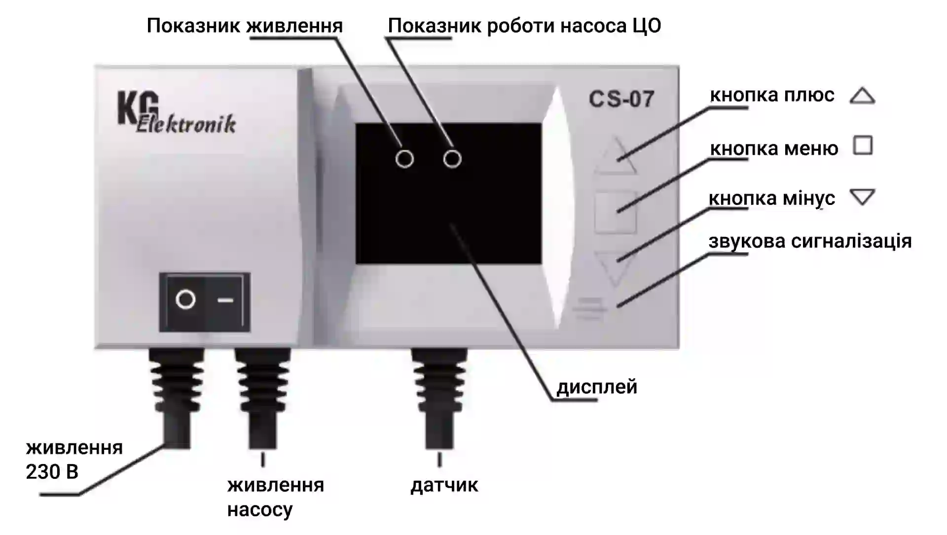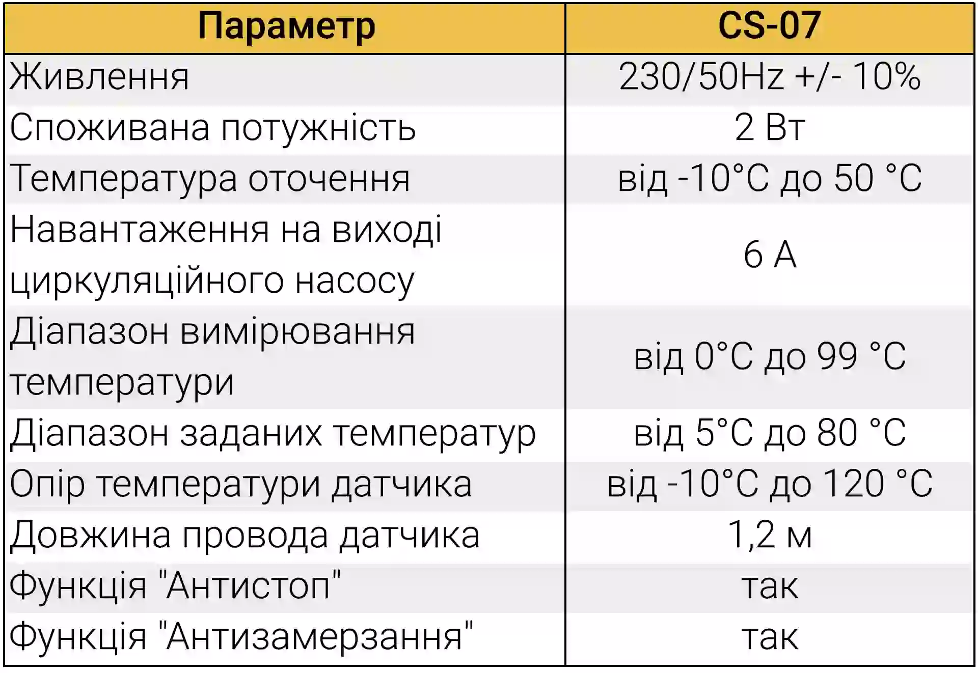 Основа роботи терморегулятора CS-07 — постійний моніторинг температури теплоносія. Ви самостійно задаєте бажаний поріг увімкнення (наприклад, 40°C).