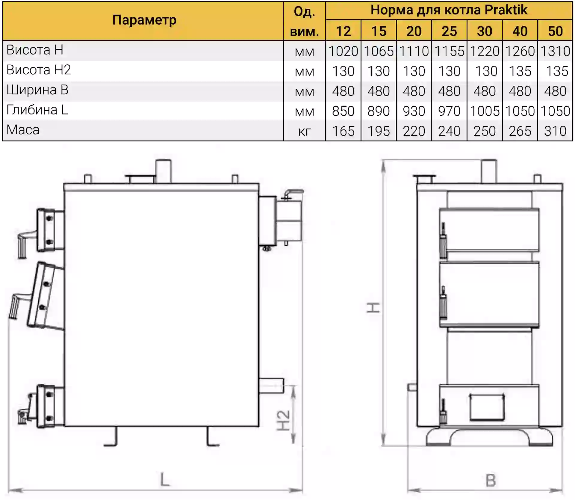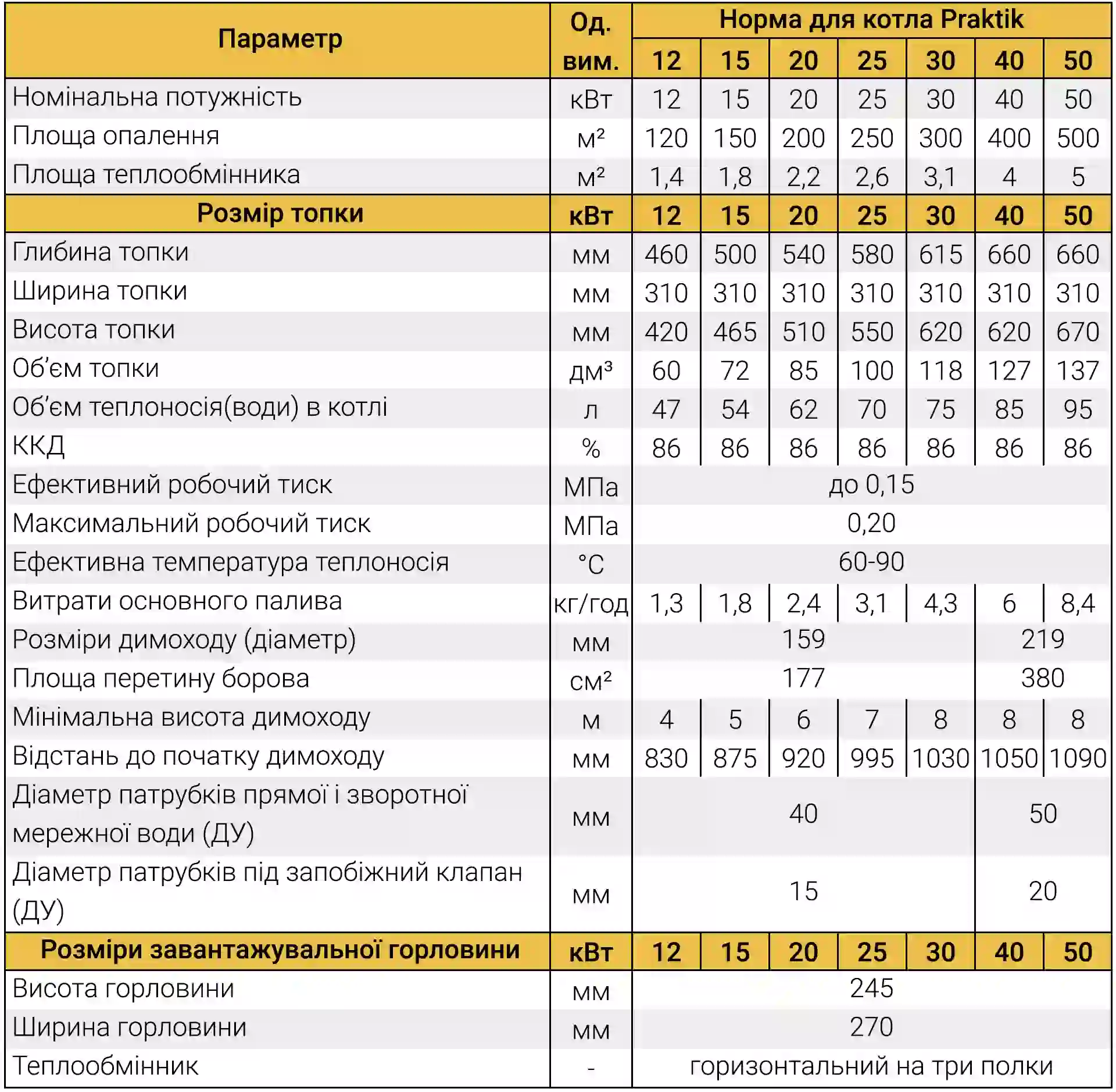 серії Практік випускає моделі з номінальною потужністю: 12,15, 20, 25, 30, 40
