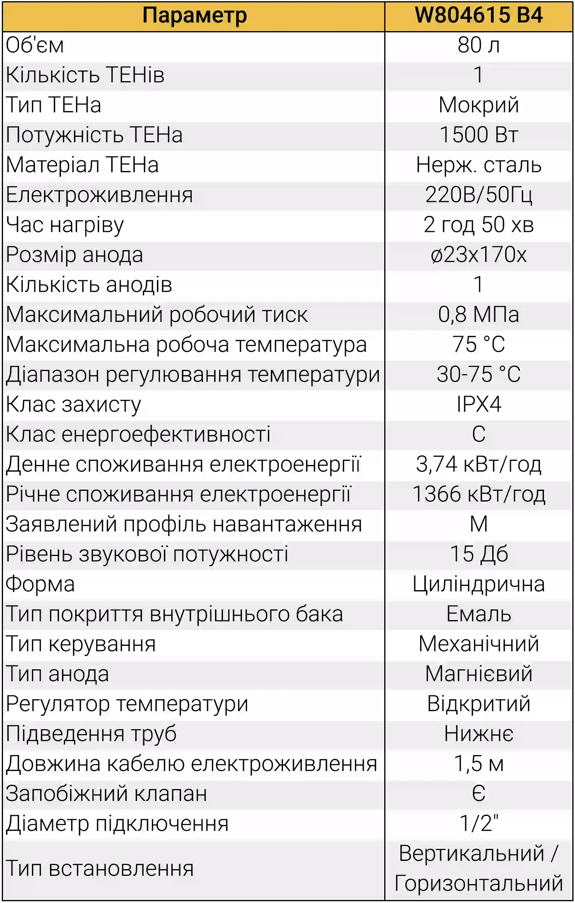 | ТЕН з нержавійки (1,5 кВт) | Оптимальне навантаження на домашню електромережу та довговічність самого нагрівача. |