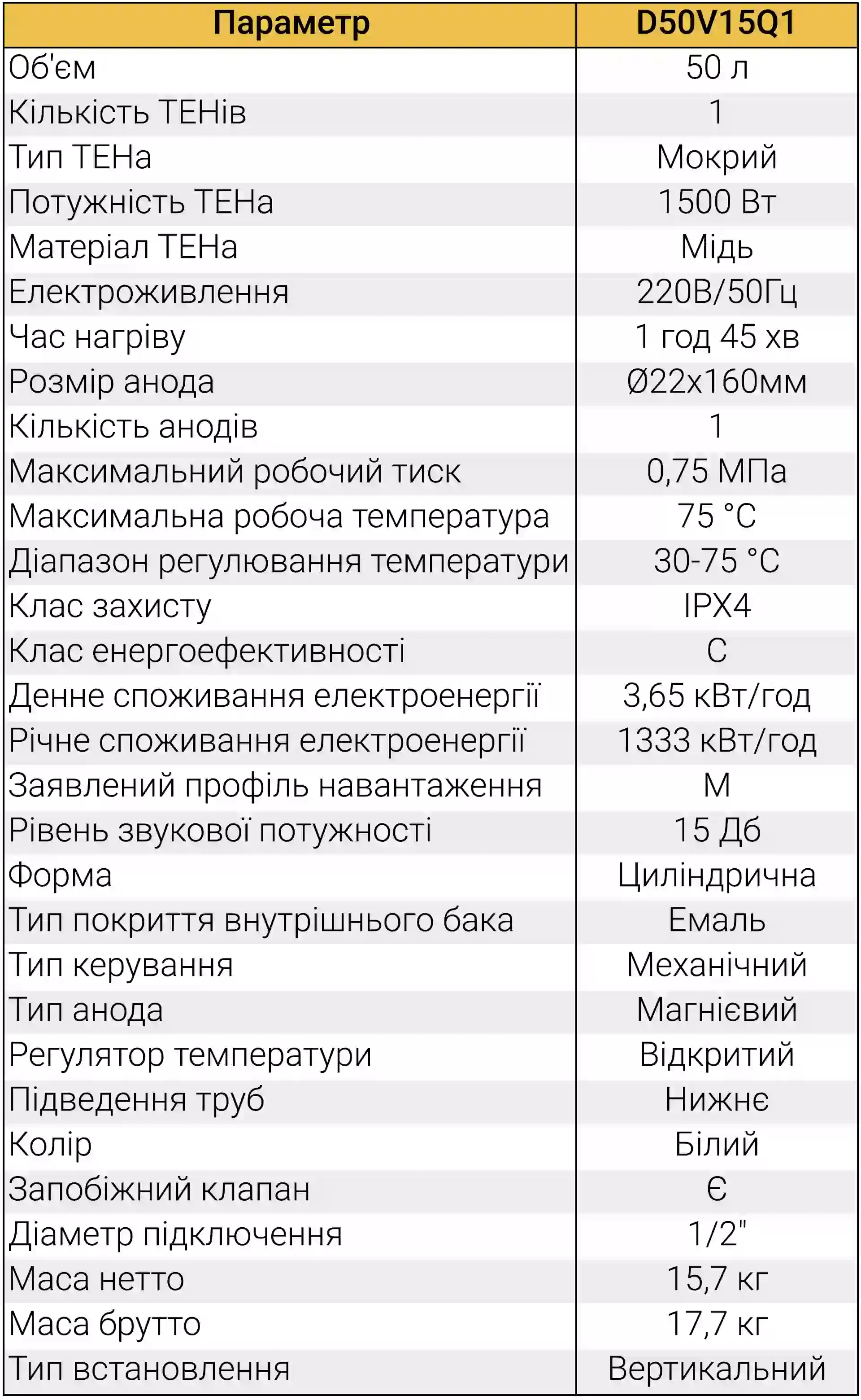 Ключові переваги моделі D50V15Q1: