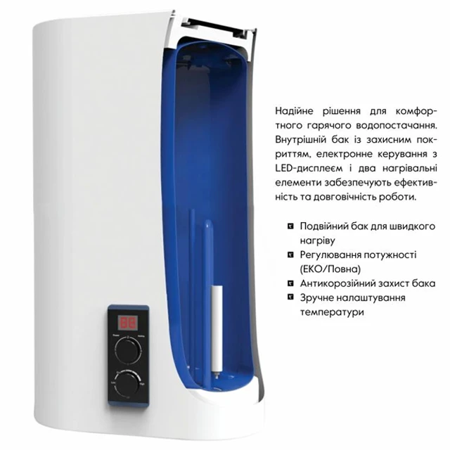 | Захист бака | Емаль + 2 аноди | Максимальний захист від протікання та іржі. |