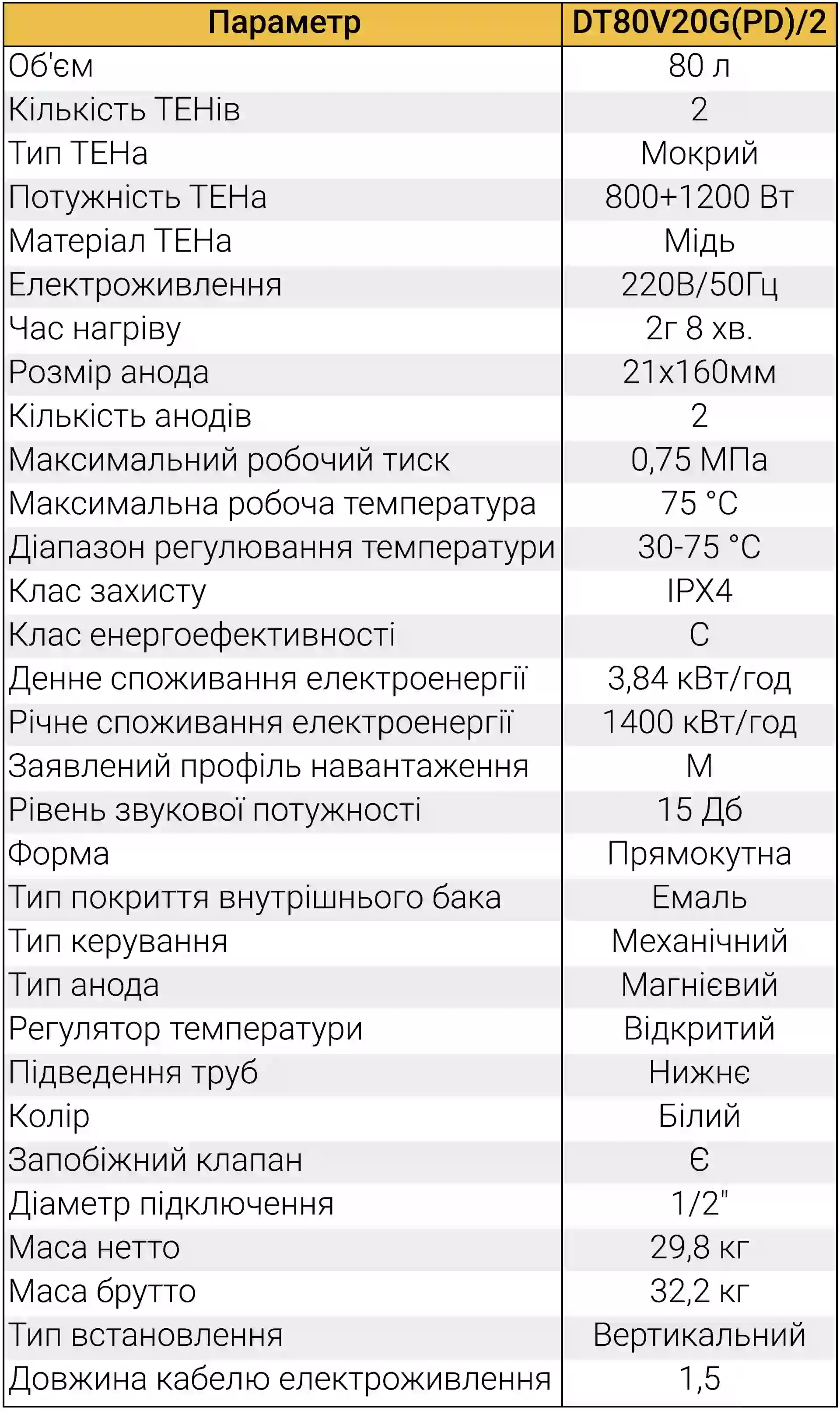 Шукаєте ефективне рішення для стабільного гарячого водопостачання? Купити бойлер Thermo Alliance серії DT — це інвестиція у власний комфорт та енергоефективність. Дана модель об'ємом 80 літрів ідеально підходить для сім'ї з 3-х осіб, поєднуючи в собі сучасний дизайн та перевірені часом технології нагріву.
