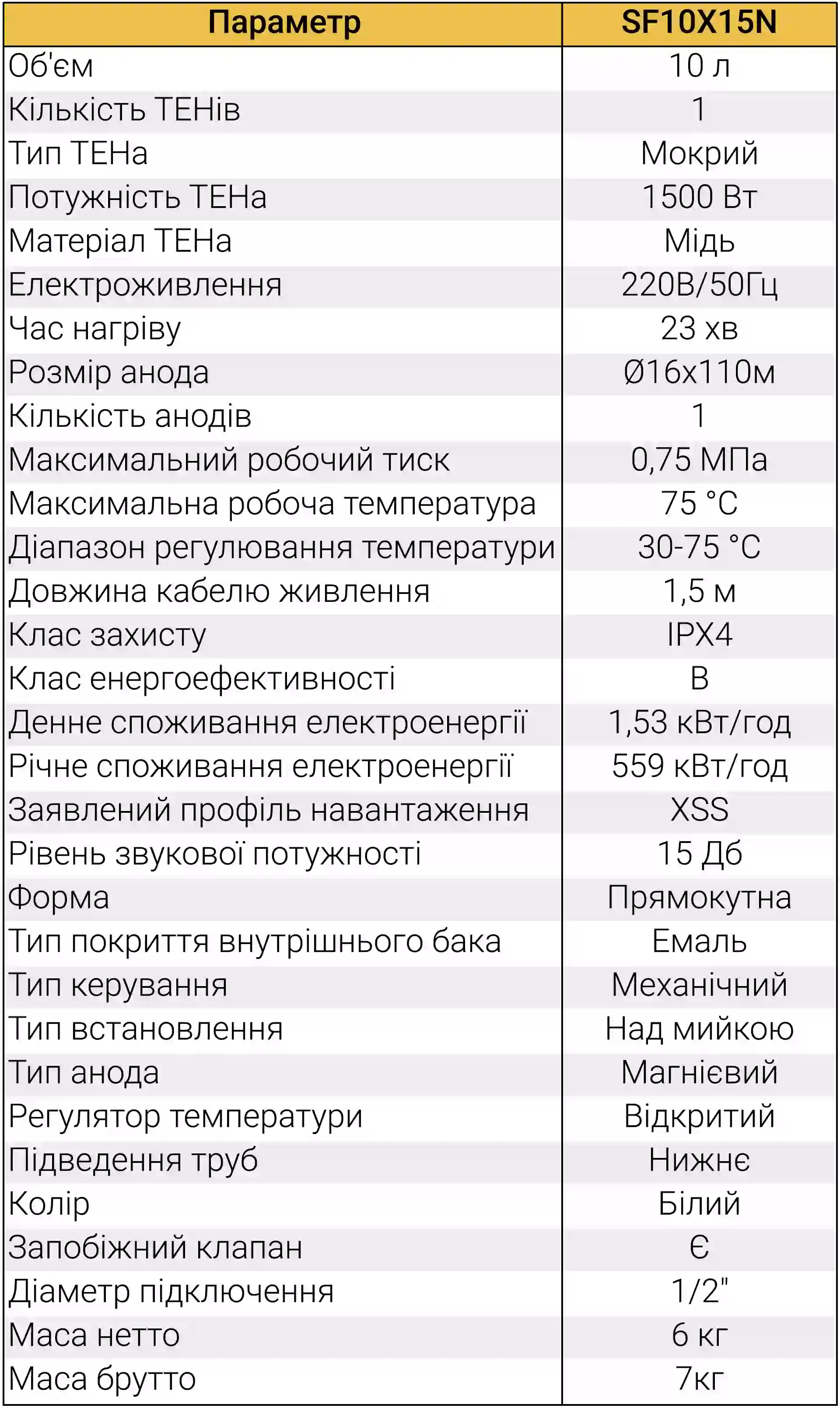 Однією з головних переваг моделі SF10X15N є потужний "мокрий" ТЕН на 1500 Вт. Оскільки об'єм бака невеликий, така потужність дозволяє нагріти воду до максимальної температури всього за 23 хвилини. Це особливо зручно на кухні, де гаряча вода потрібна часто, але невеликими порціями.