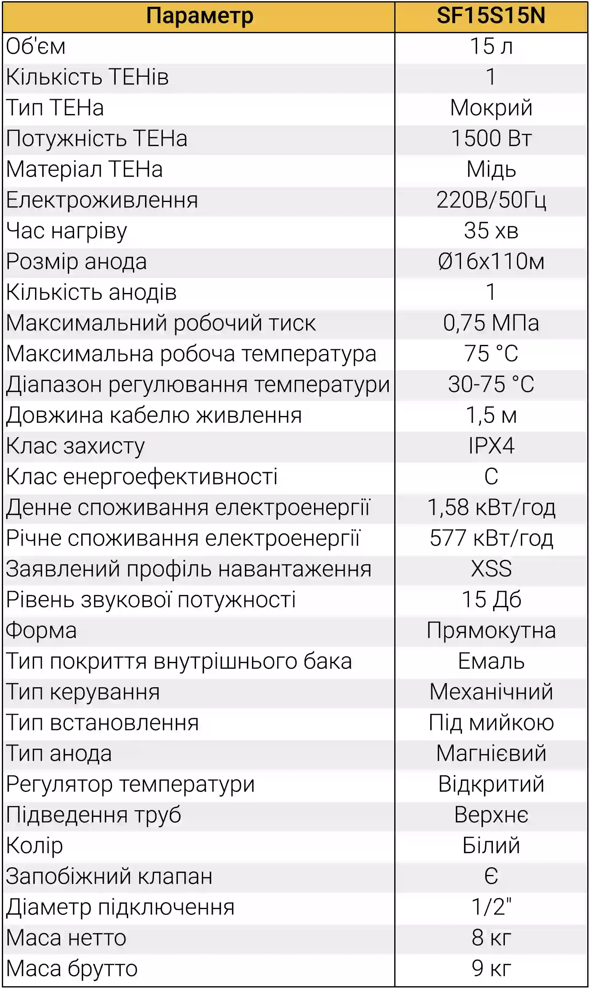 Забезпечте собі комфорт вже сьогодні. Обирайте надійність від українського бренду — замовляйте Thermo Alliance SF15S15N, щоб забути про крижану воду під час побутових справ!