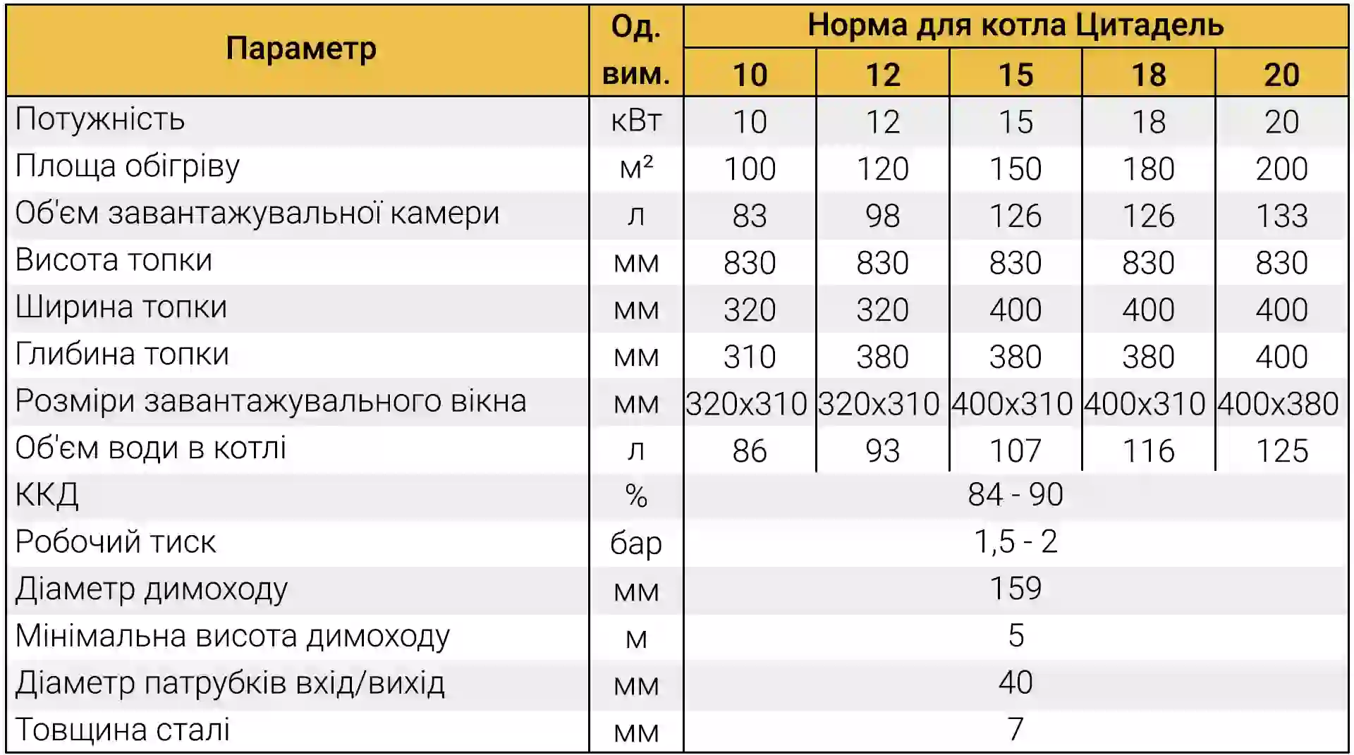 - Матеріали високої якості: теплообмінник зі сталі товщиною 7 мм забезпечує довговічність.