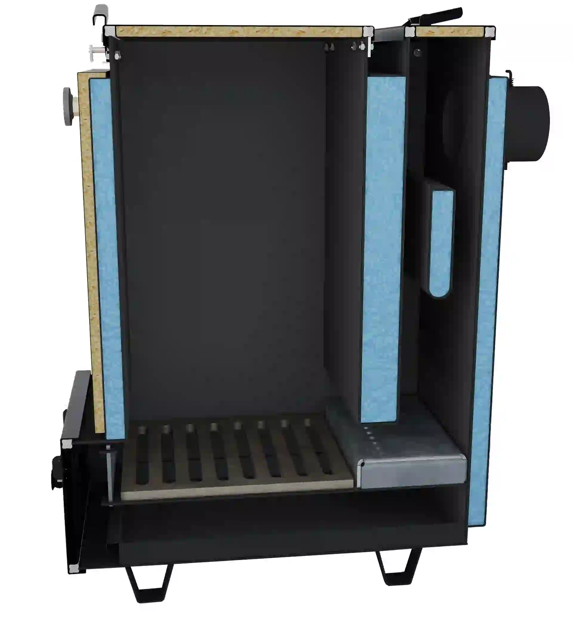 - Підтримка різних видів палива: дрова, вугілля, брикети, а також відходи деревообробки.