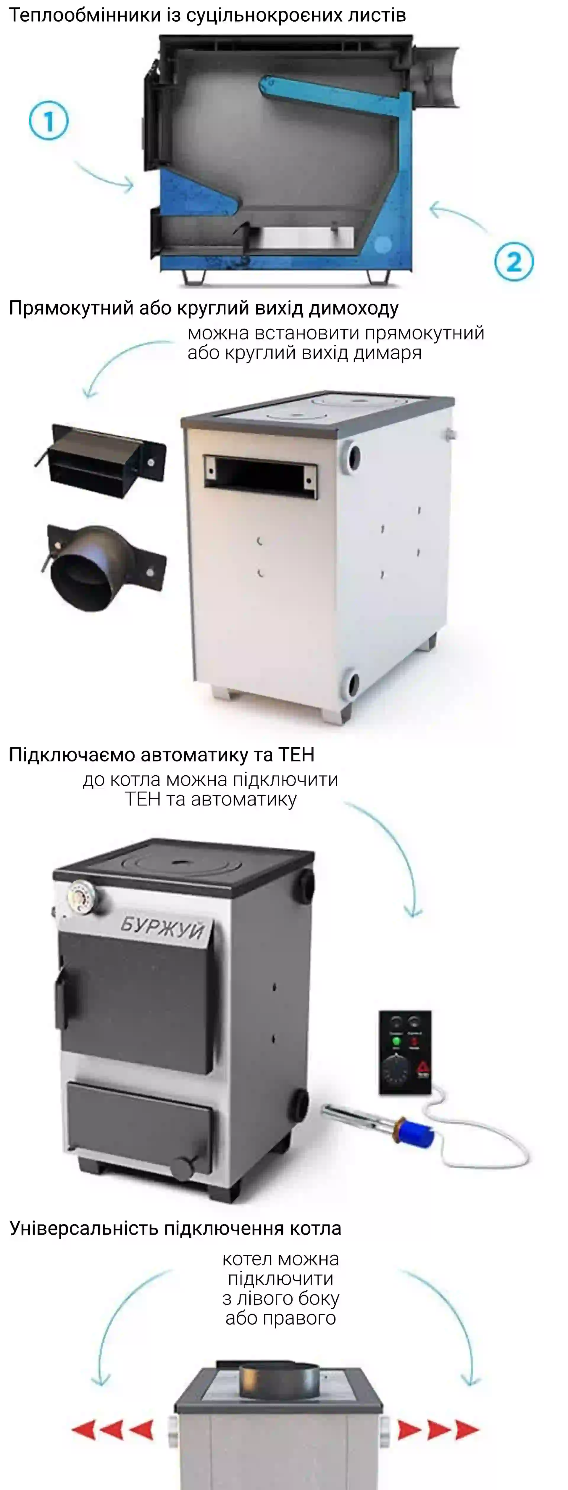 Котел БУРЖУЙ - сталевий твердопаливний опалювальний апарат з