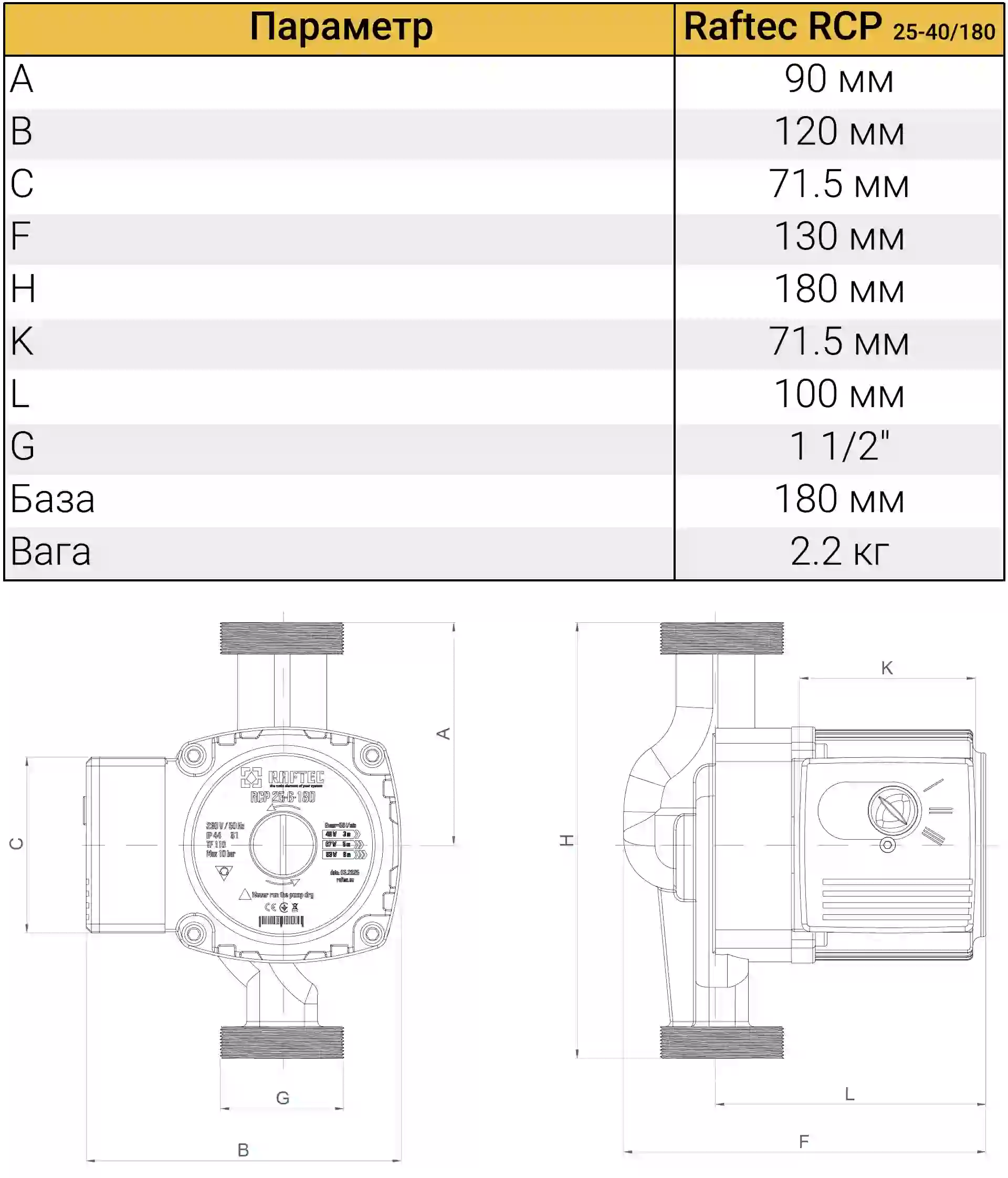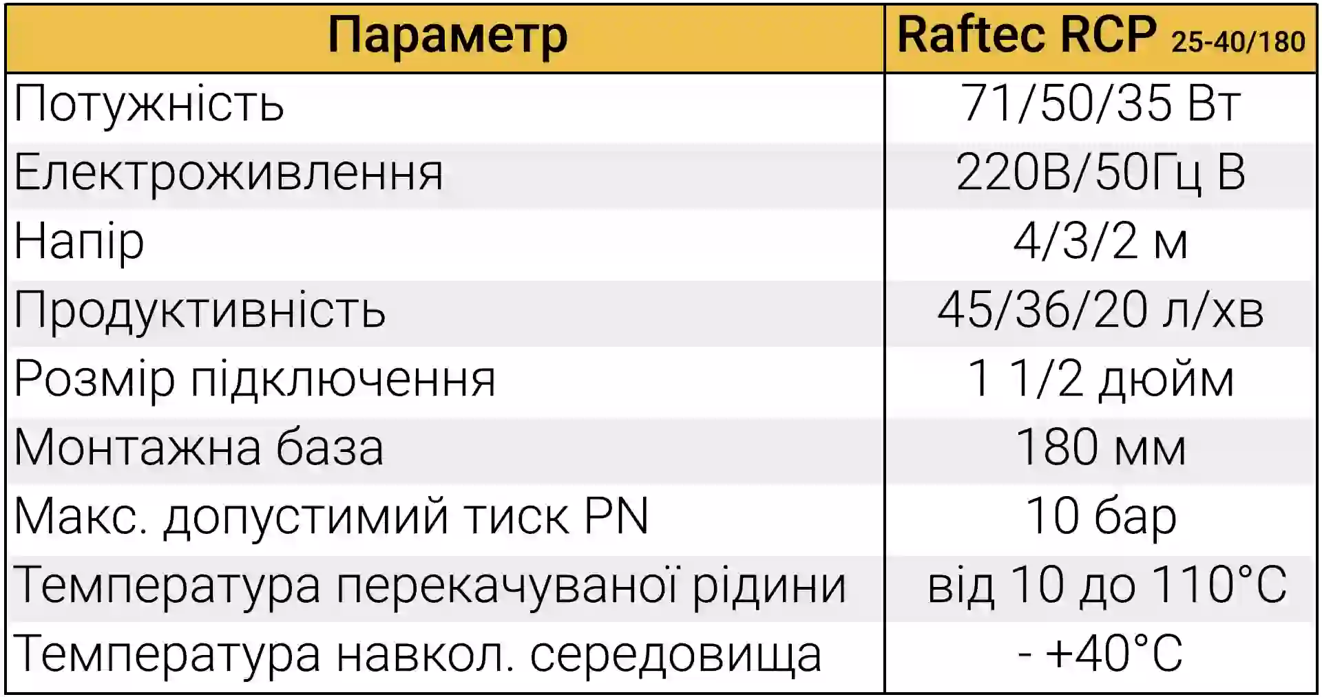 Циркуляційний насос Raftec RCP 25-40/180