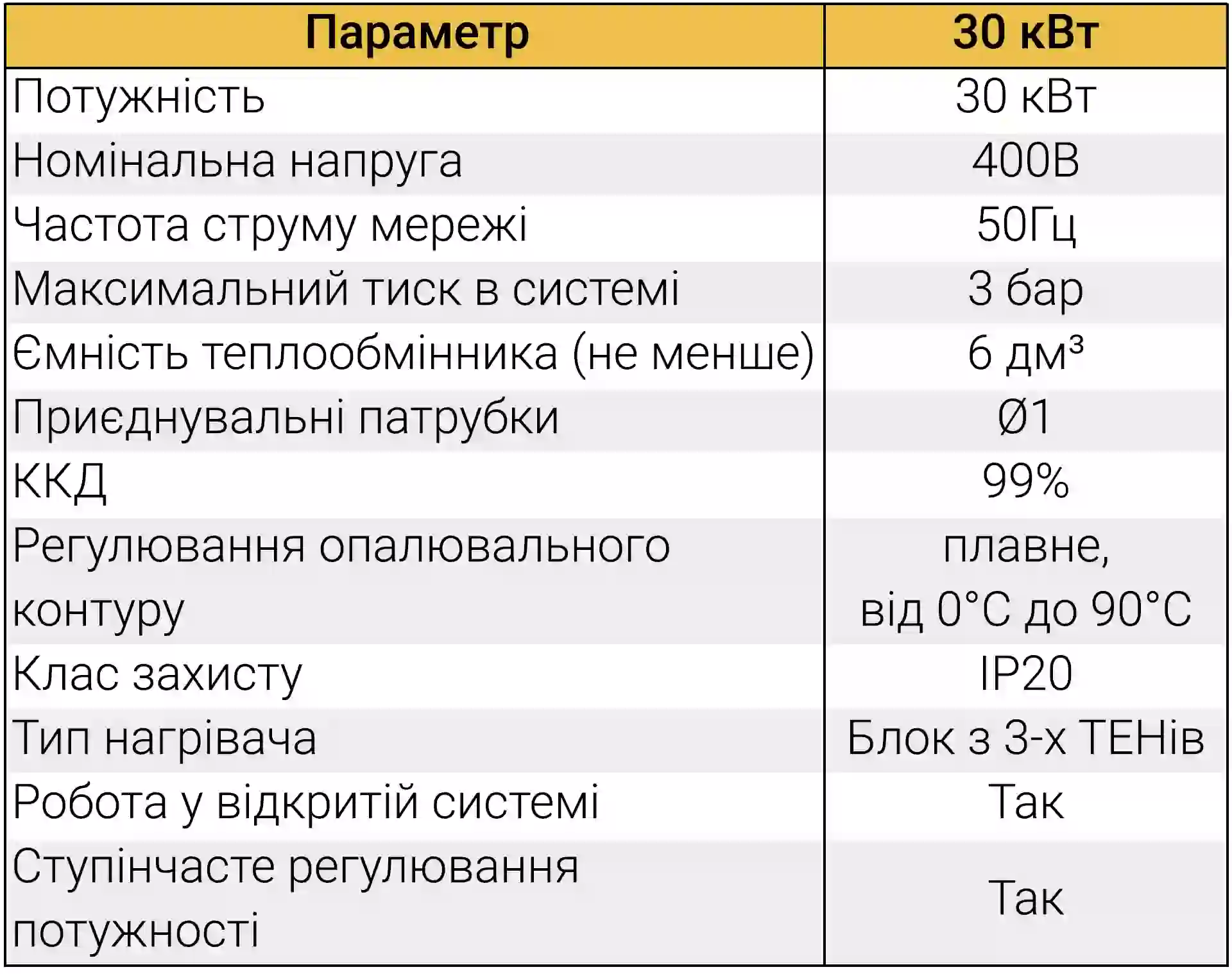 - Оптимізація енергоспоживання: прилад має три ступені потужності. Вам не доведеться використовувати всі 30 кВт у міжсезоння — достатньо увімкнути лише частину ТЕНів залежно від потреб.