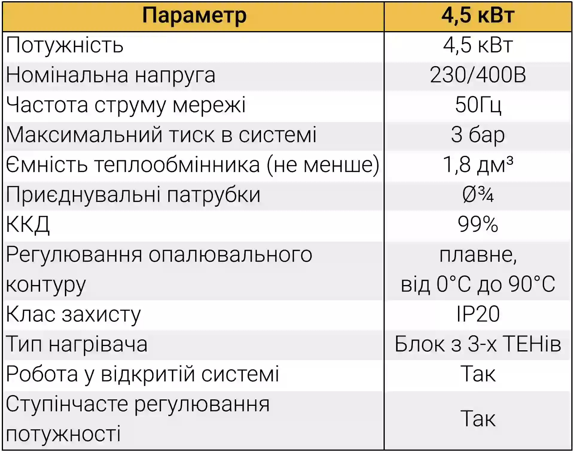 - Двоступенева система захисту: вбудований термовідсікач миттєво реагує на позаштатні ситуації та запобігає руйнуванню системи від перегріву.
