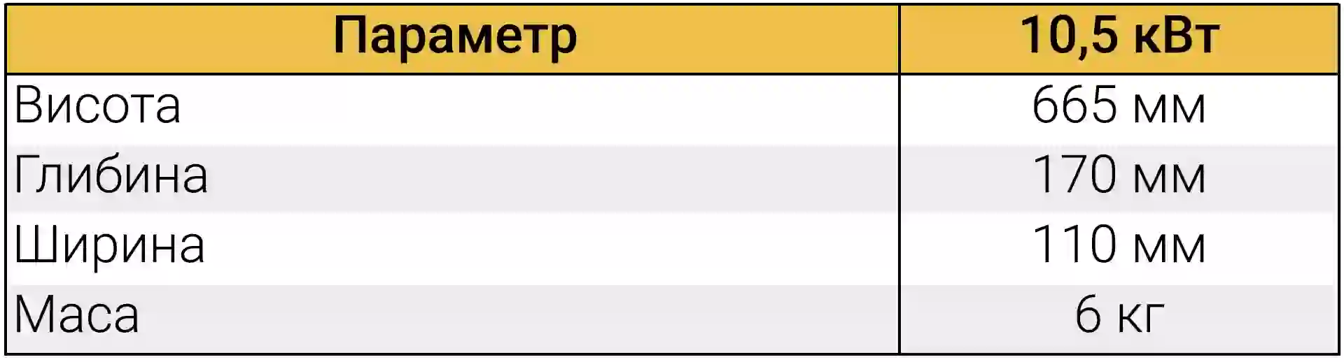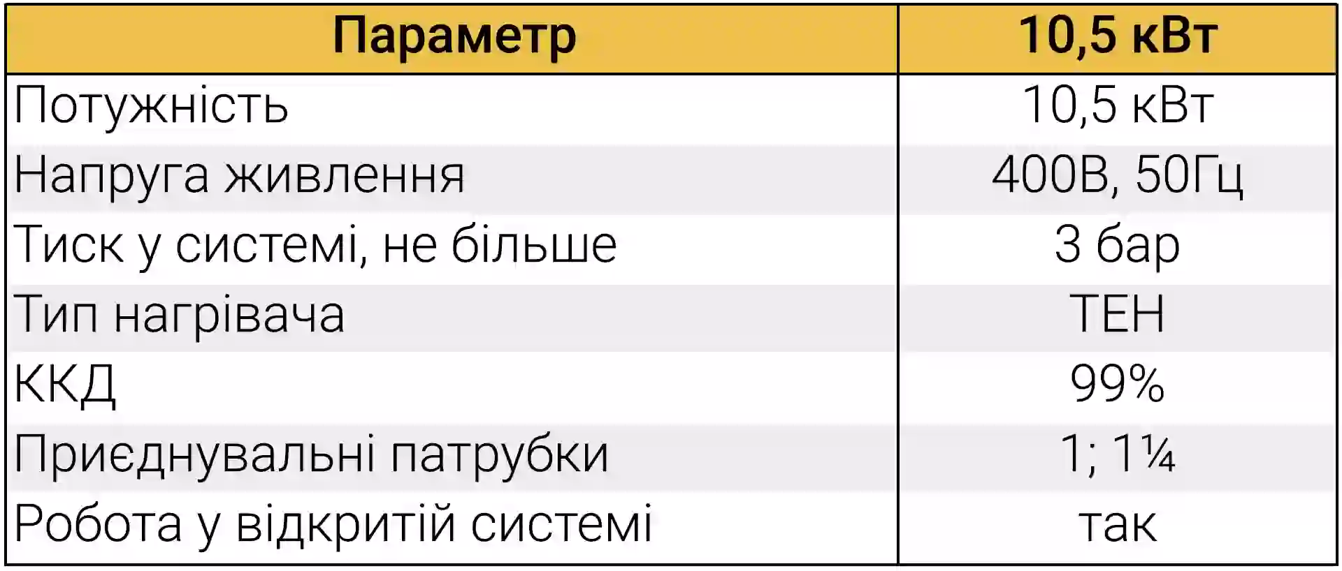 Потужність 10,5 кВт дозволяє закрити потребу в теплі для просторих котеджів, СТО, невеликих складів чи магазинів. Цей теплогенератор чудово справляється з роллю основного опалення, але найчастіше його застосовують у гібридних системах. Наприклад, вдень ви використовуєте твердопаливну піч, а вночі естафету перехоплює електрика. За наявності двотарифного лічильника це дозволяє суттєво знизити витрати на комунальні послуги.