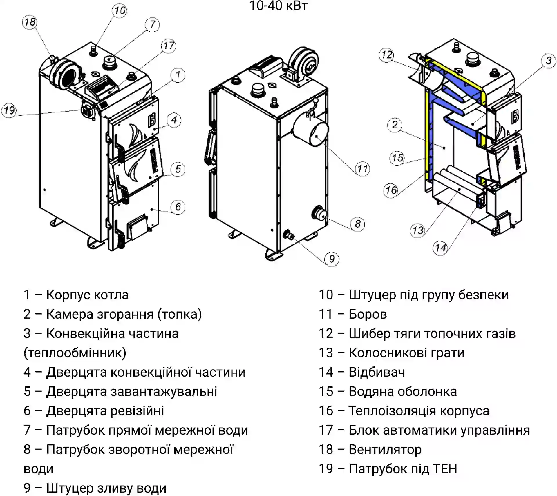 Завдяки такій конструкції твердопаливні котли Feniks відзначаються довговічністю та ефективністю.