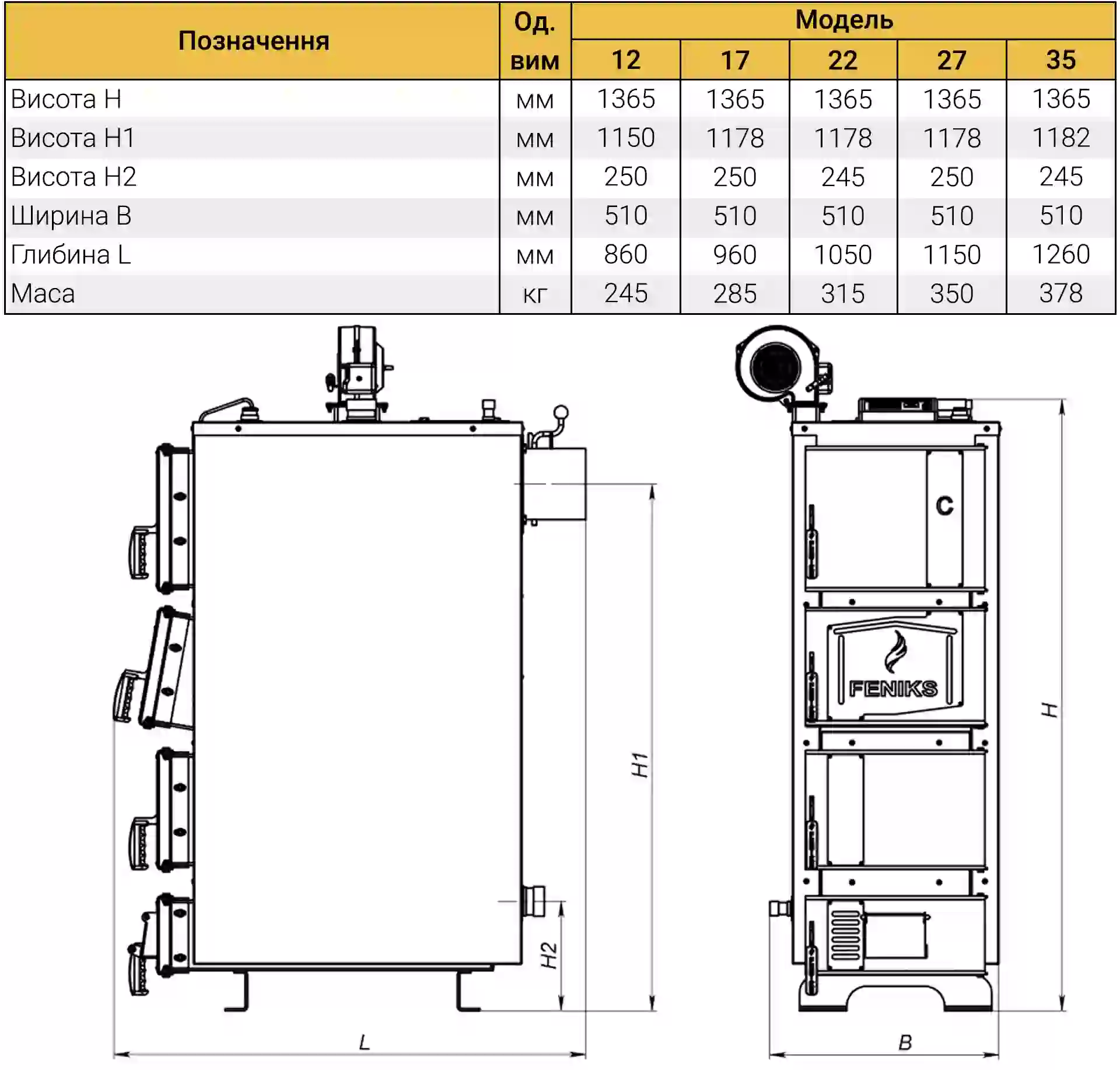 Твердопаливний котел тривалого горіння FENIKS С (9-35 кВт)