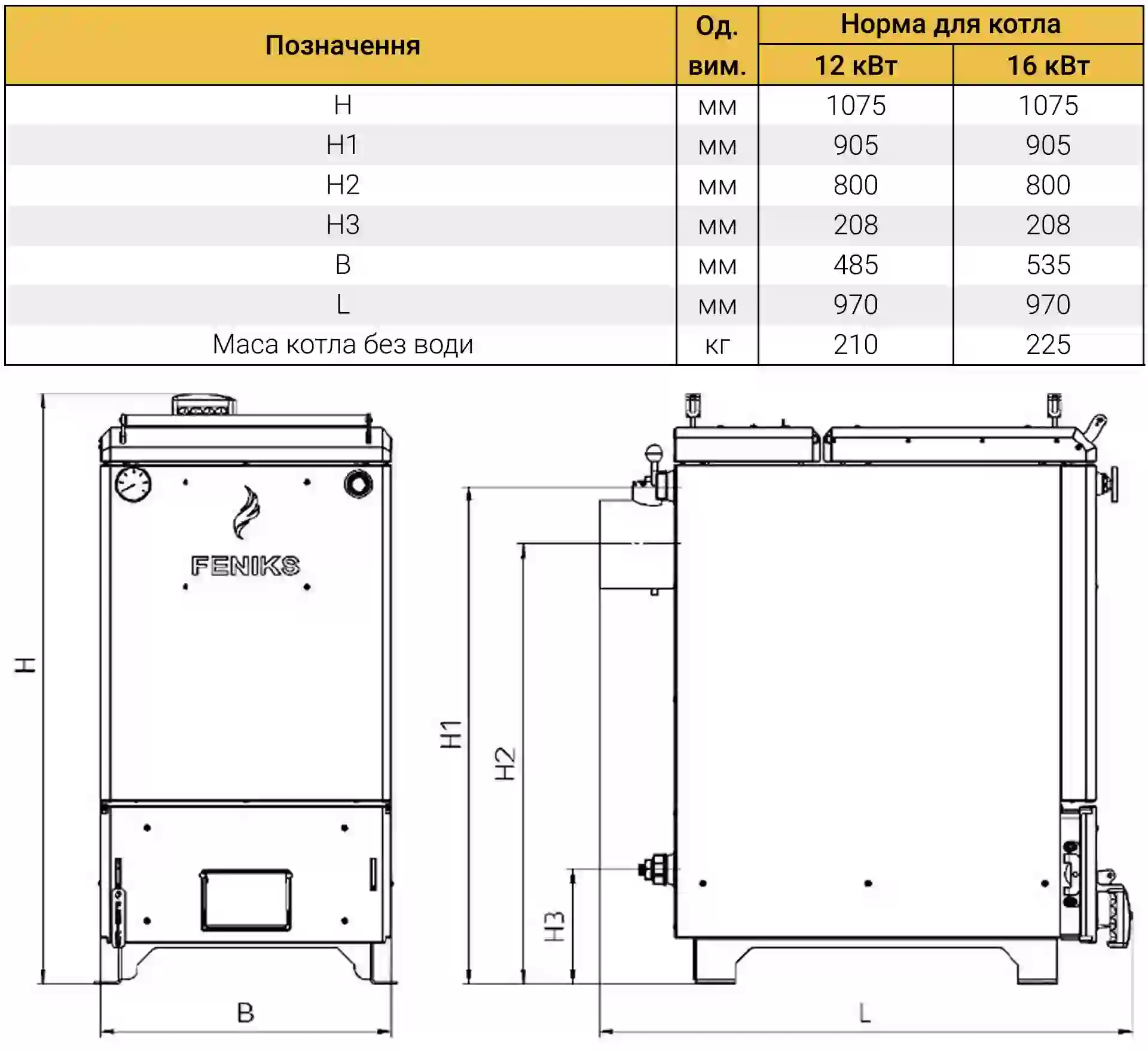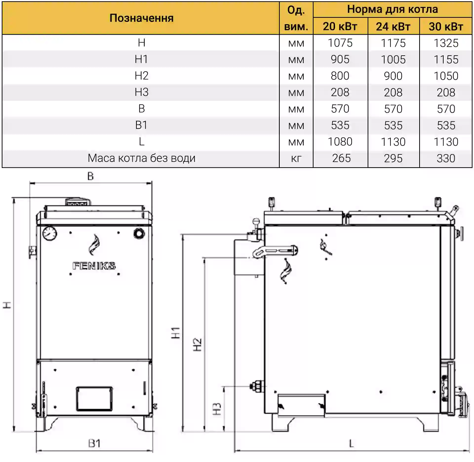 - Шахтний котел тривалого горіння Feniks I Plus відрізняється