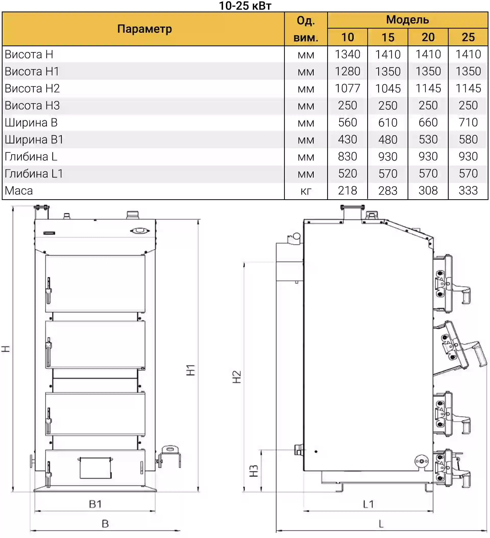 серії випускає котли з номінальною потужністю 10 кВт та 15 кВт. Ці моделі