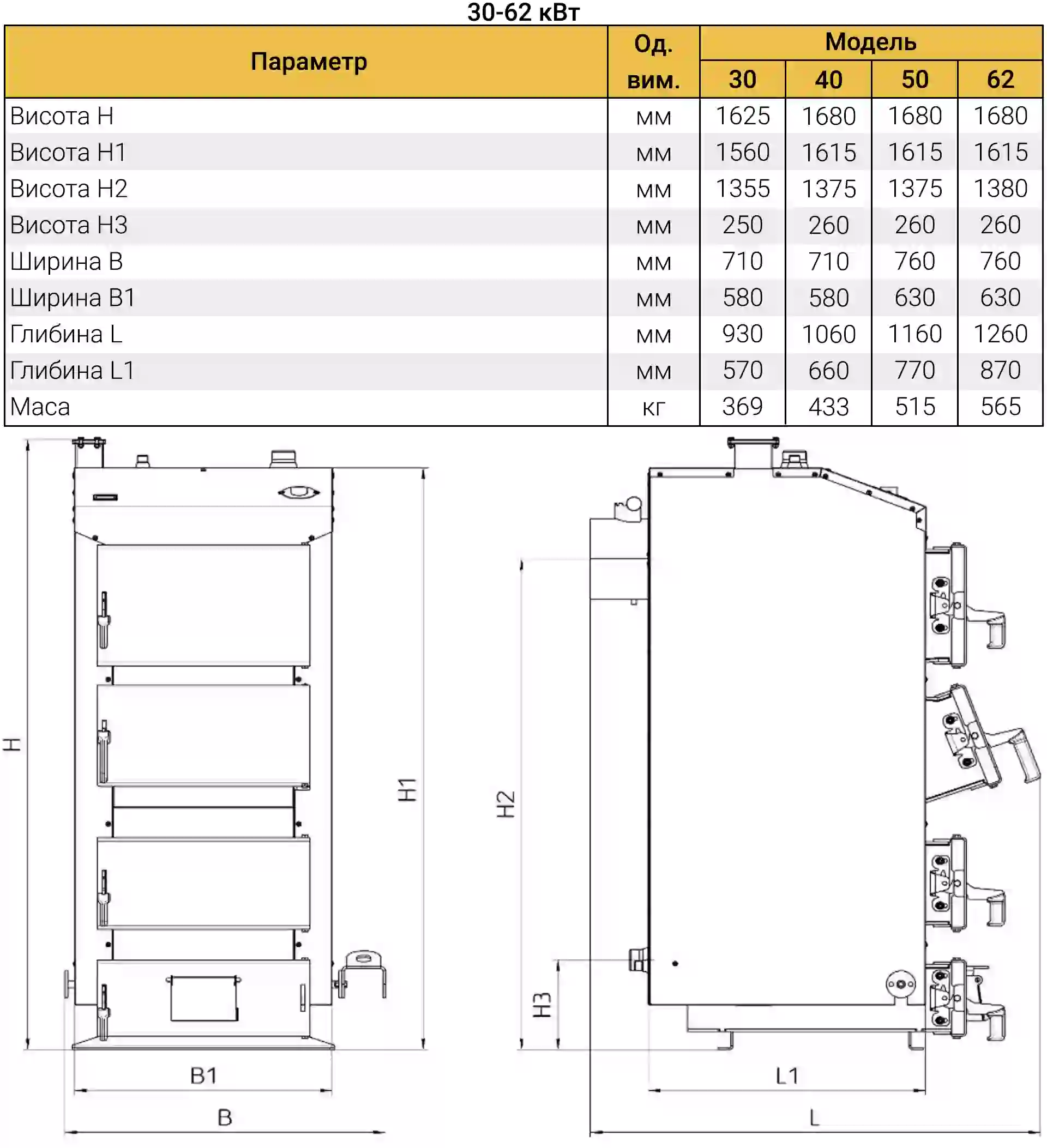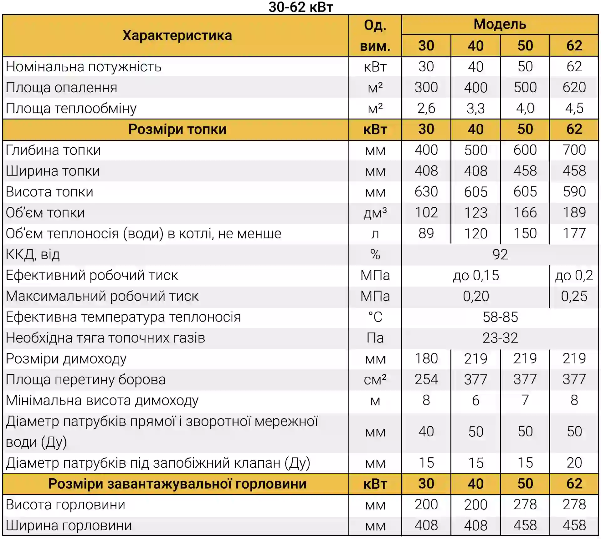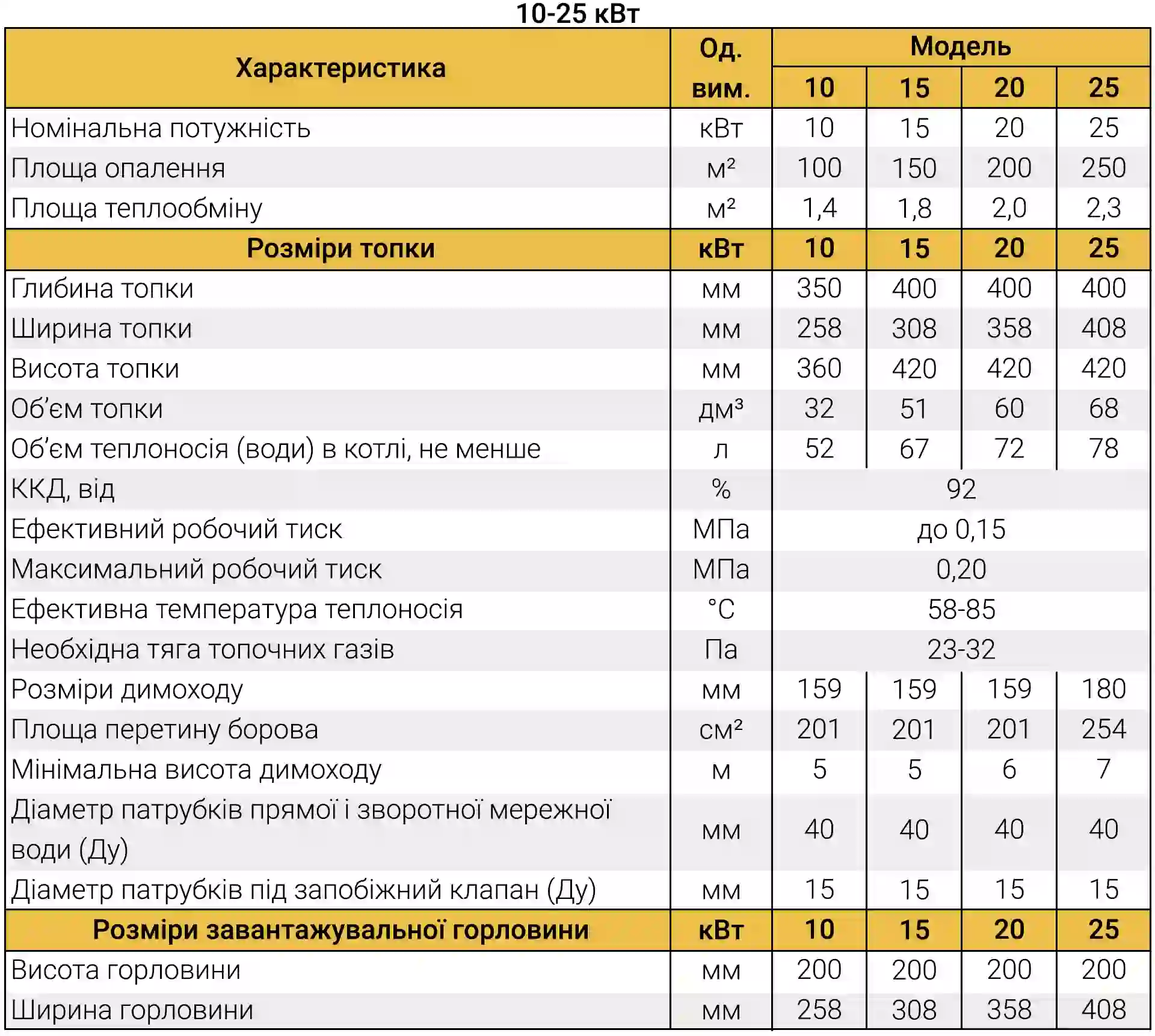 - Надійна конструкція, виготовлена з жароміцної котлової сталі