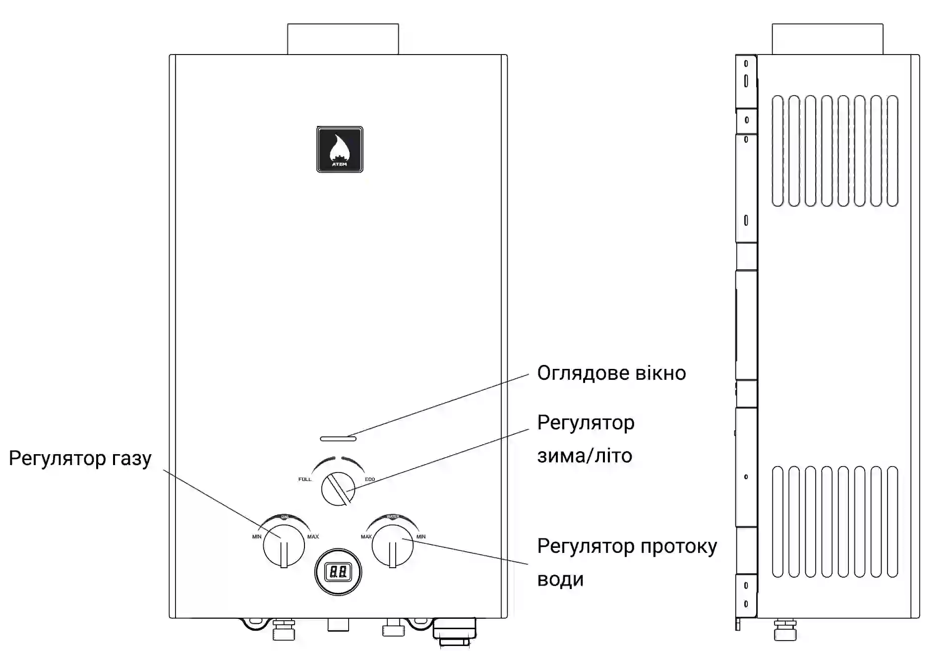 Газова колонка проточного типу АТЕМ ВПГ-20