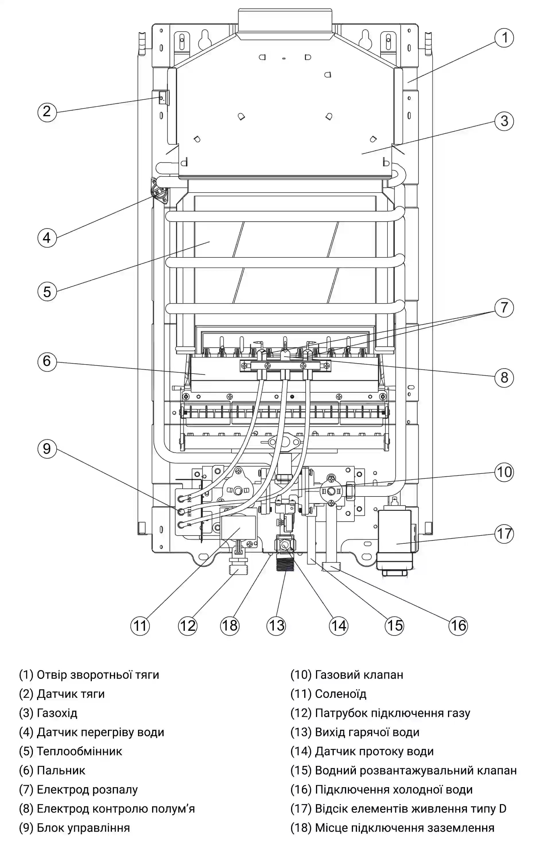 газу, холодної води та виходу ГВП. У верхній частині встановлено бор для
