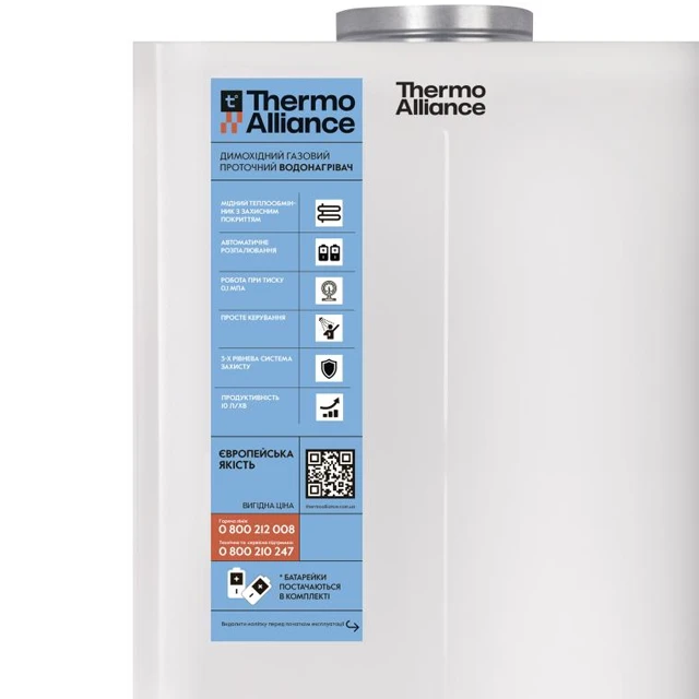 Газова колонка Thermo Alliance JSD20-10CR — це оптимальне співвідношення ціни, якості та надійності. Забезпечте свій дім безперебійною подачею гарячої води вже сьогодні. Замовляйте онлайн — швидка доставка по Україні та професійна консультація гарантовані!