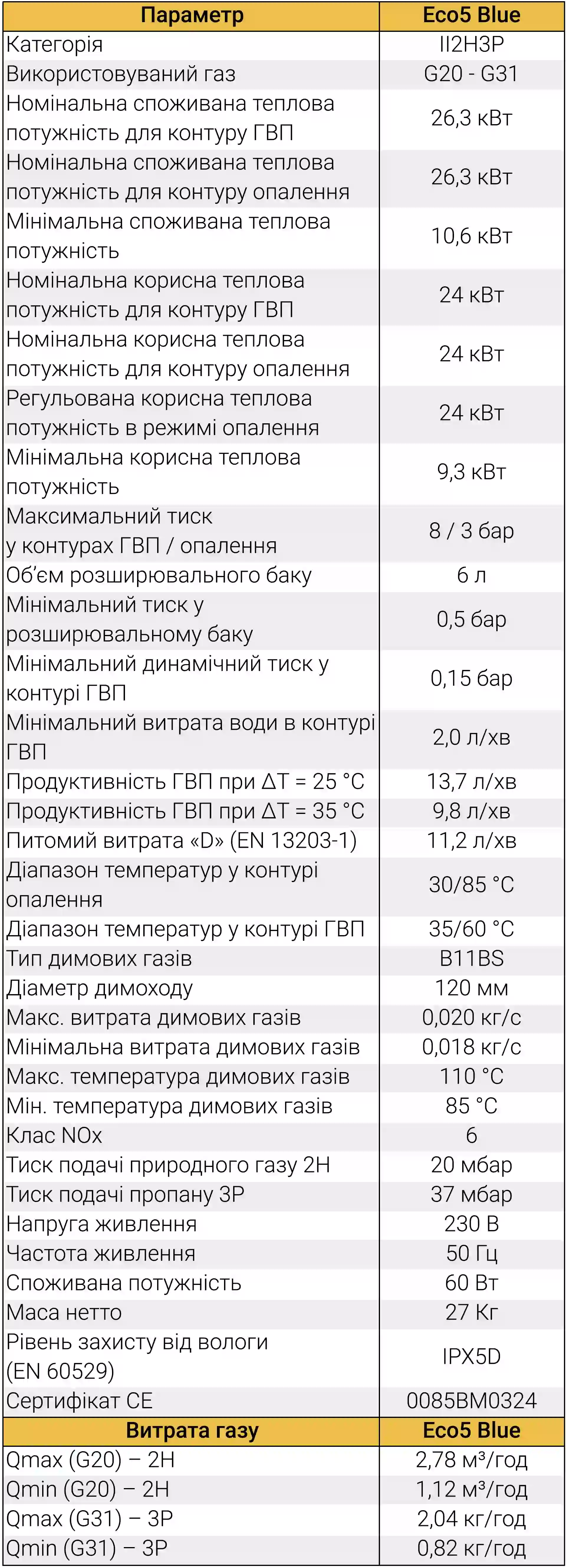 Газовий настінний двоконтурний димохідний котел Baxi Eco5 Blue 24 кВт: ефективне тепло для вашого дому