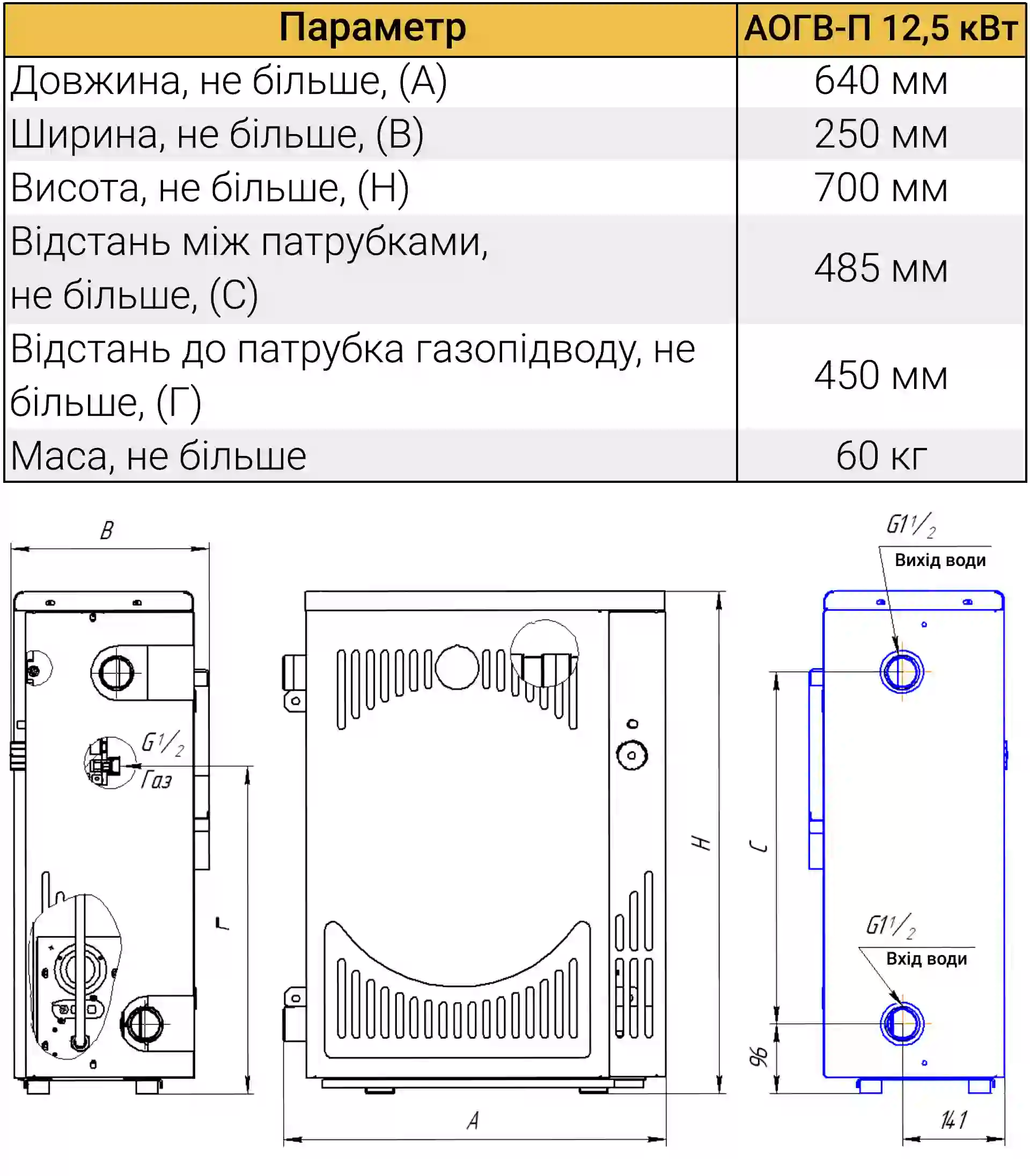 Газовий парапетний котел МАЯК АОГВ П 12,5 кВт