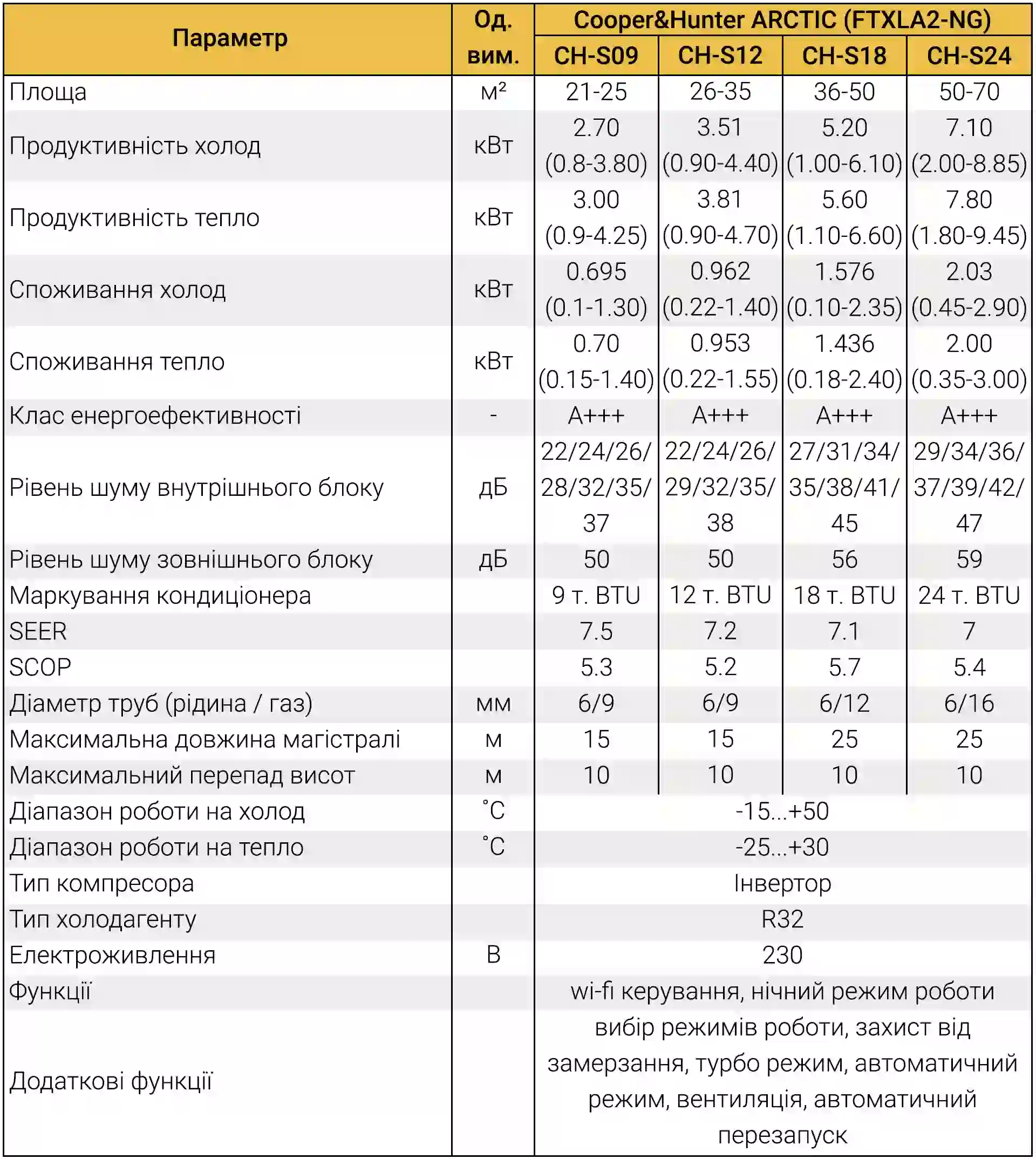 | ARCTIC CH-S09FTXLA2-NG | до 25 м² | 2.64 | 2.81 |