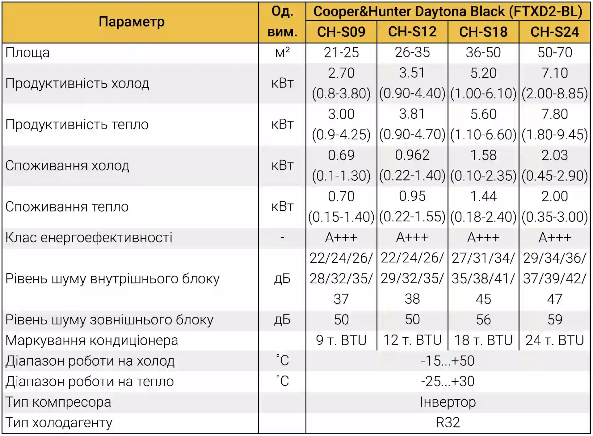 Кондиціонер Cooper&Hunter Daytona (Black): Інверторна ефективність та стильний дизайн