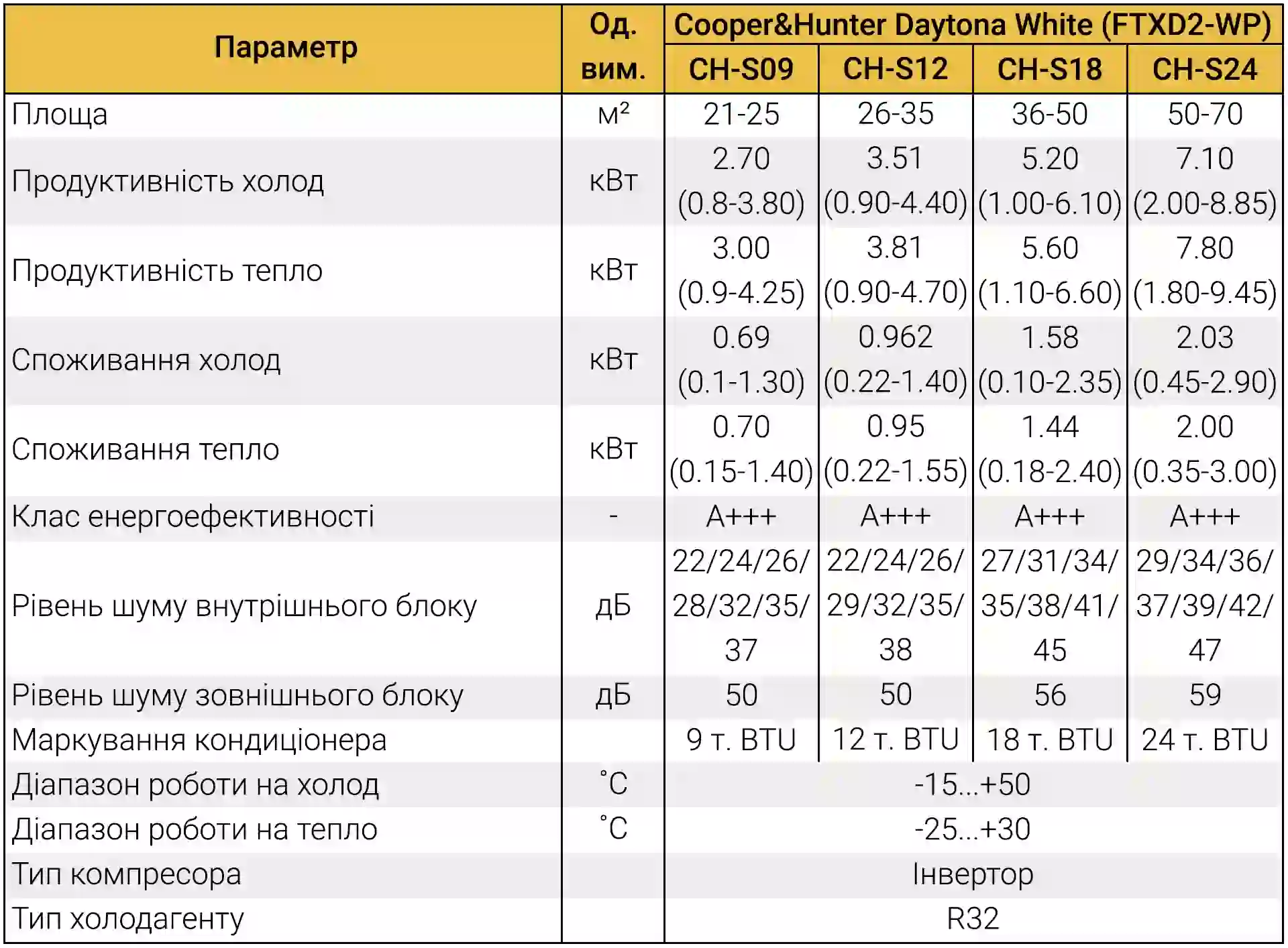 Коли мова заходить про створення комфортного мікроклімату в оселі, серія інверторних кондиціонерів Cooper&Hunter Daytona (White) встановлює нові стандарти. Це не просто пристрій для охолодження, а повноцінна кліматична система, що поєднує в собі виняткову енергоефективність (клас A+++), надійну роботу на обігрів у суворі морози та передові технології очищення повітря.