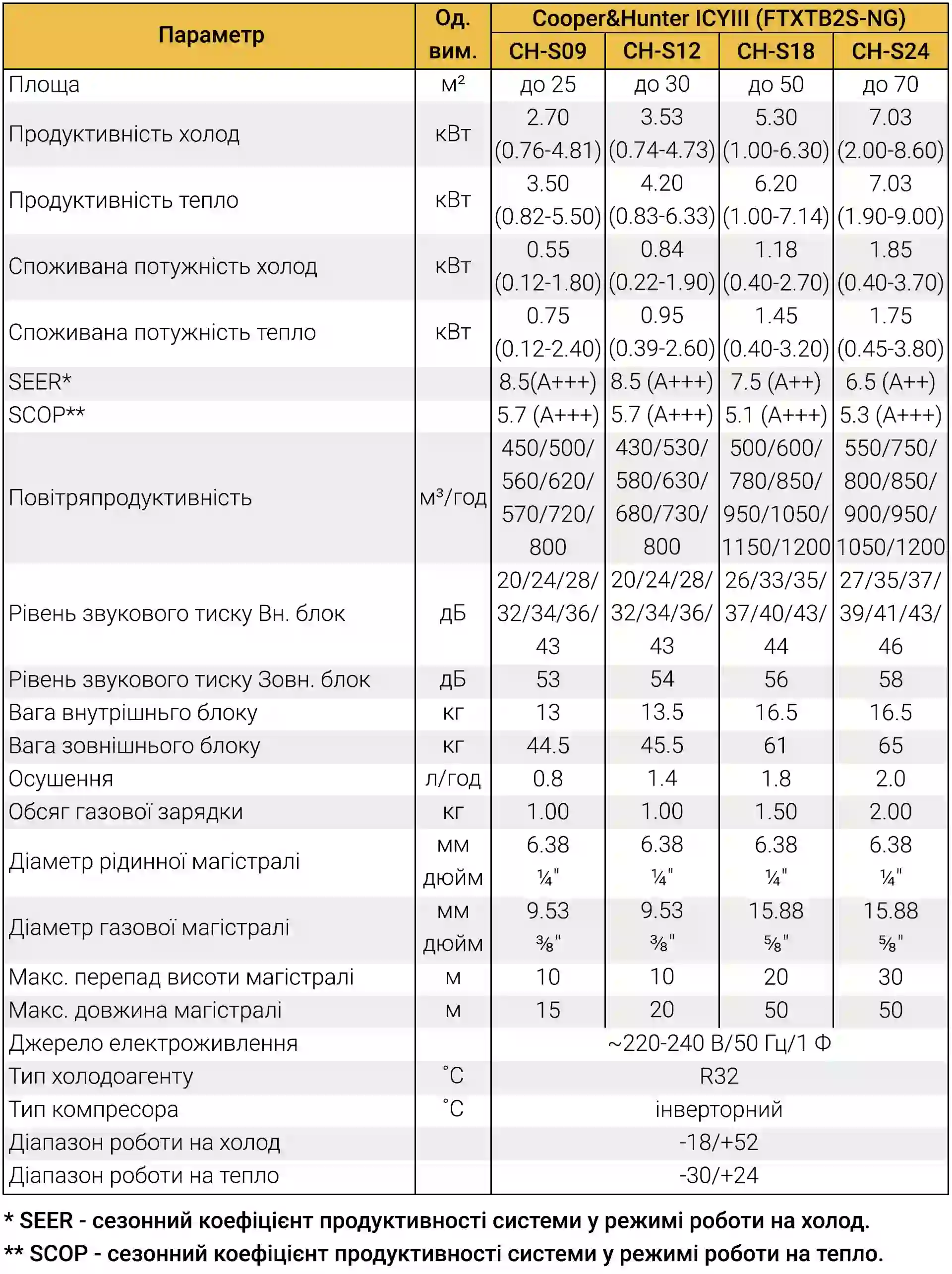 Ця технологія робить ICYIII ідеальним кліматичним рішенням для будь-якого сезону, забезпечуючи стабільність та високу продуктивність без втрати потужності.