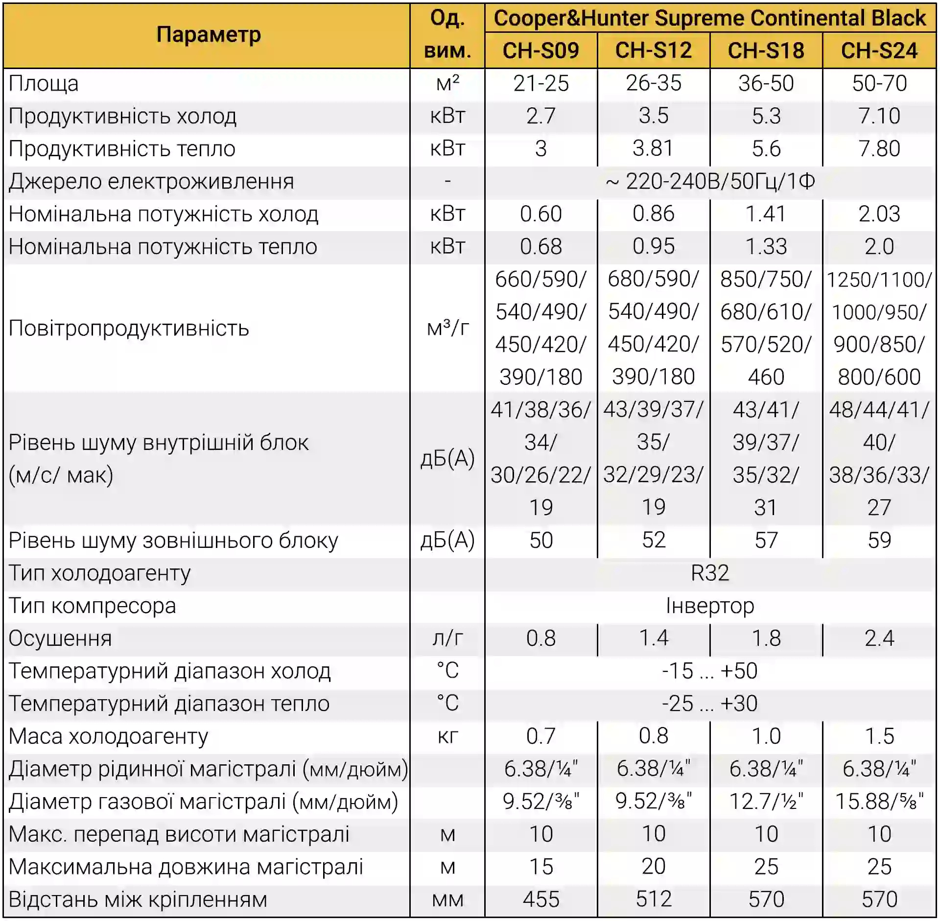 Cooper&Hunter Supreme Continental Full Black: інверторний кондиціонер з дизайном Full Black та класом A+++