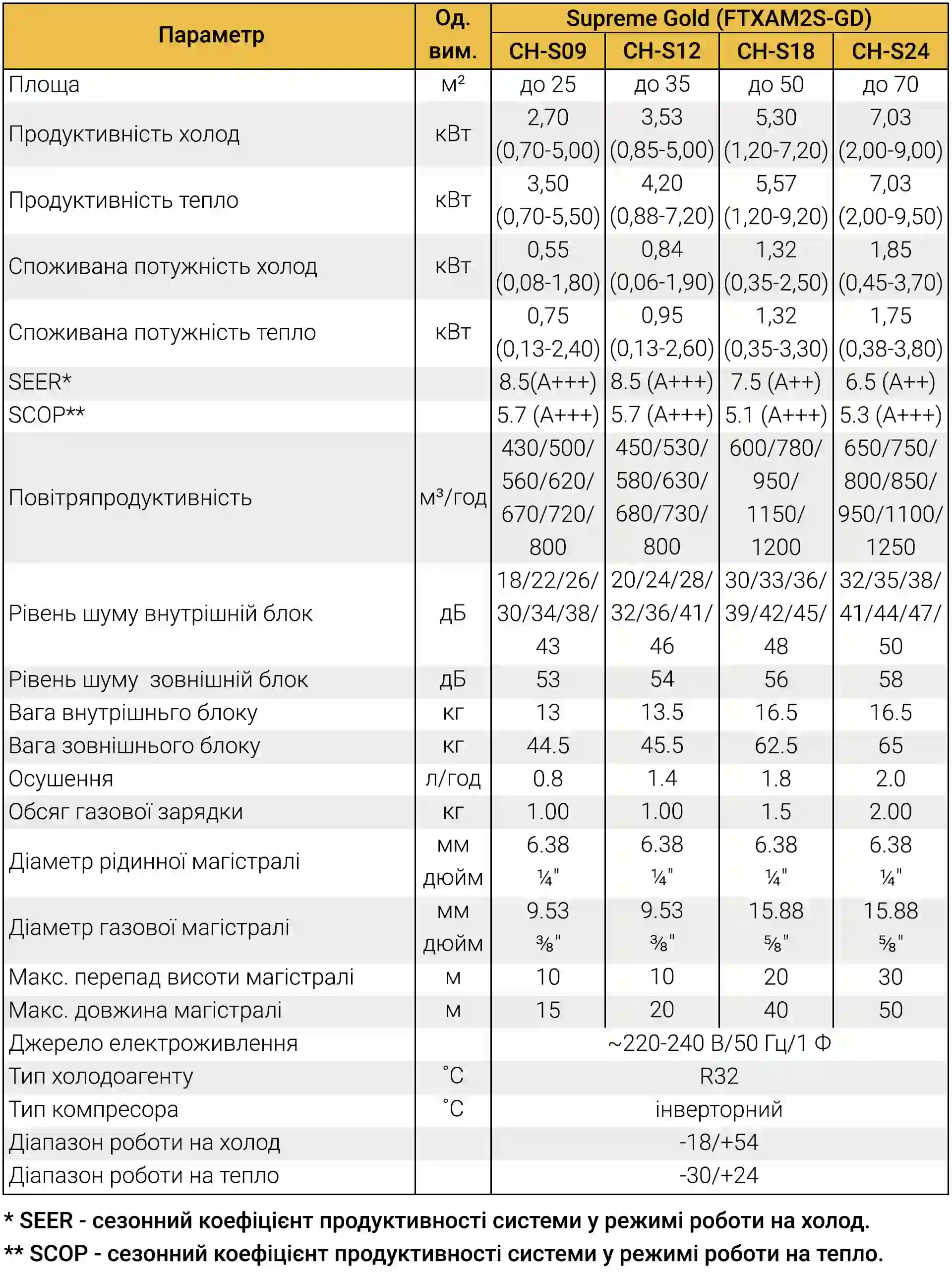 | CH-S24FTXAM2S-GD | до 70 м² | 6.70 | 7.00 |