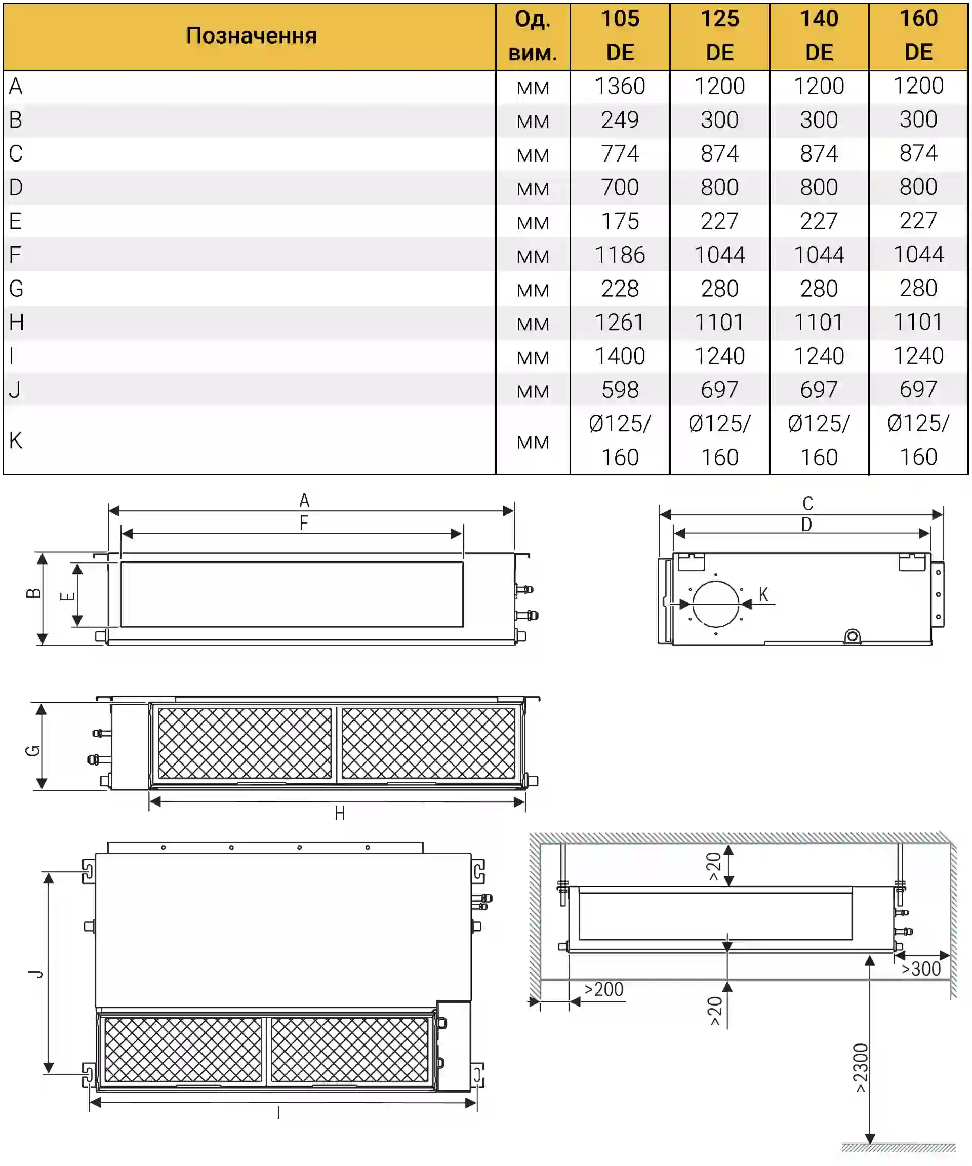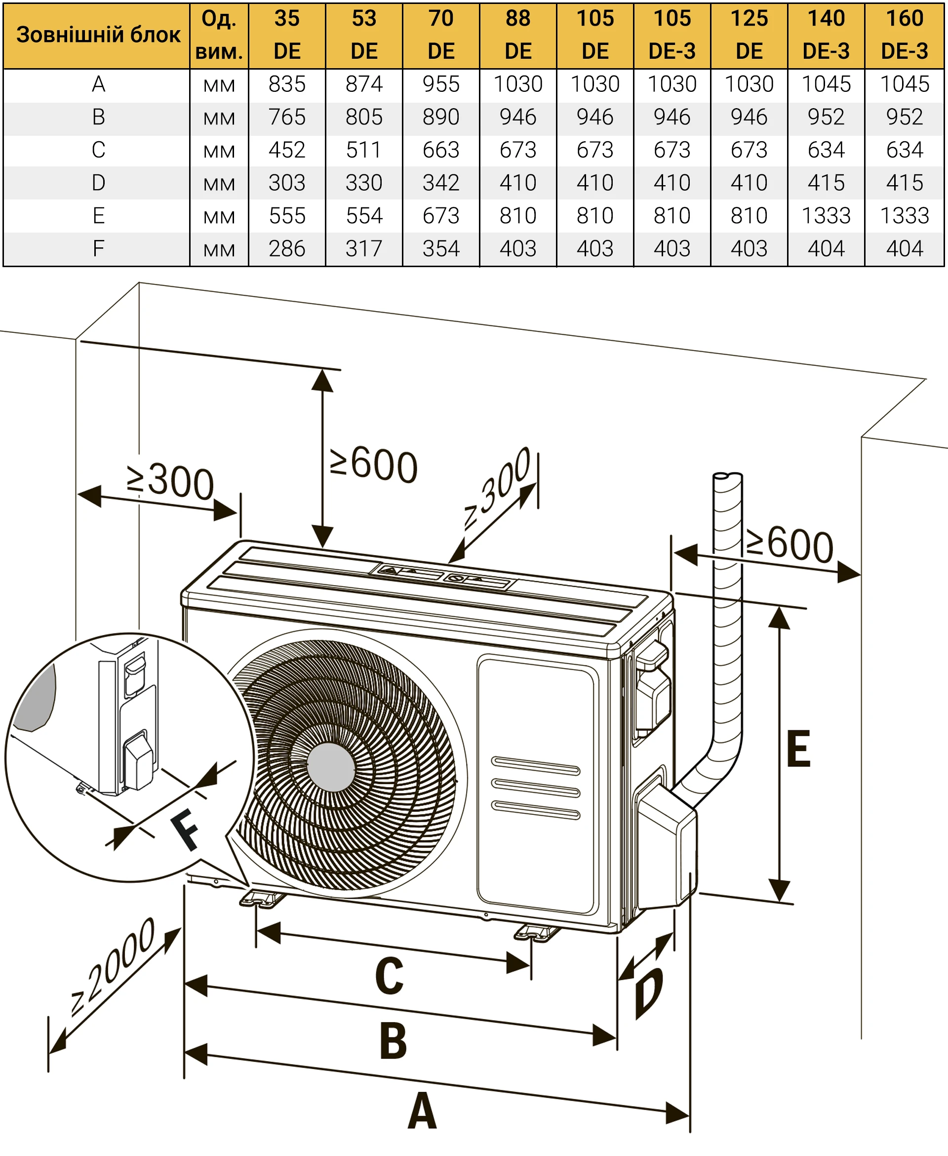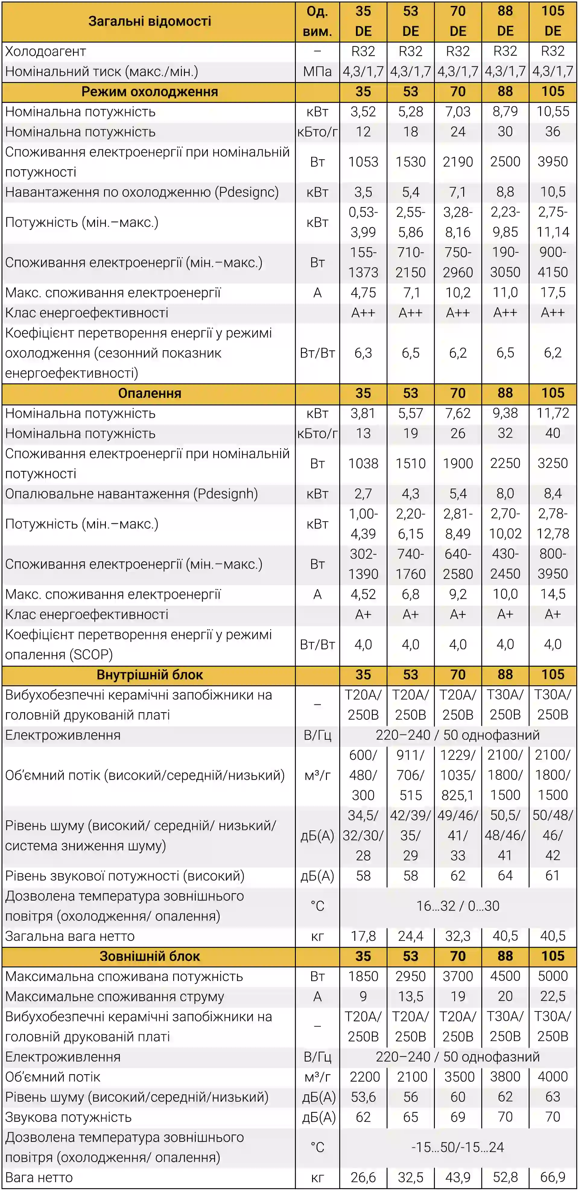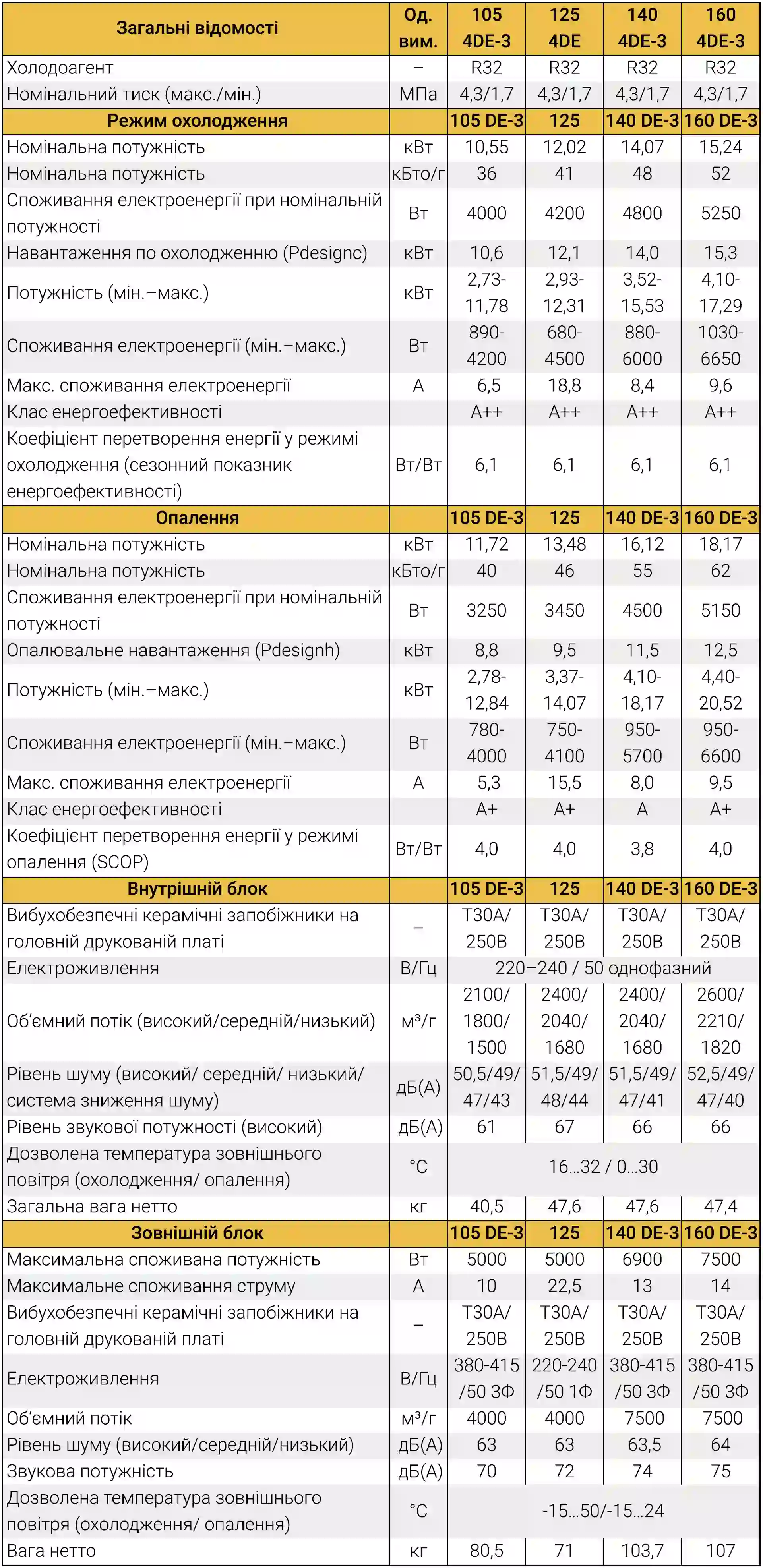 - Робота у системі TWIN (моделі DE-3) — можливість поєднання двох внутрішніх блоків на один зовнішній.