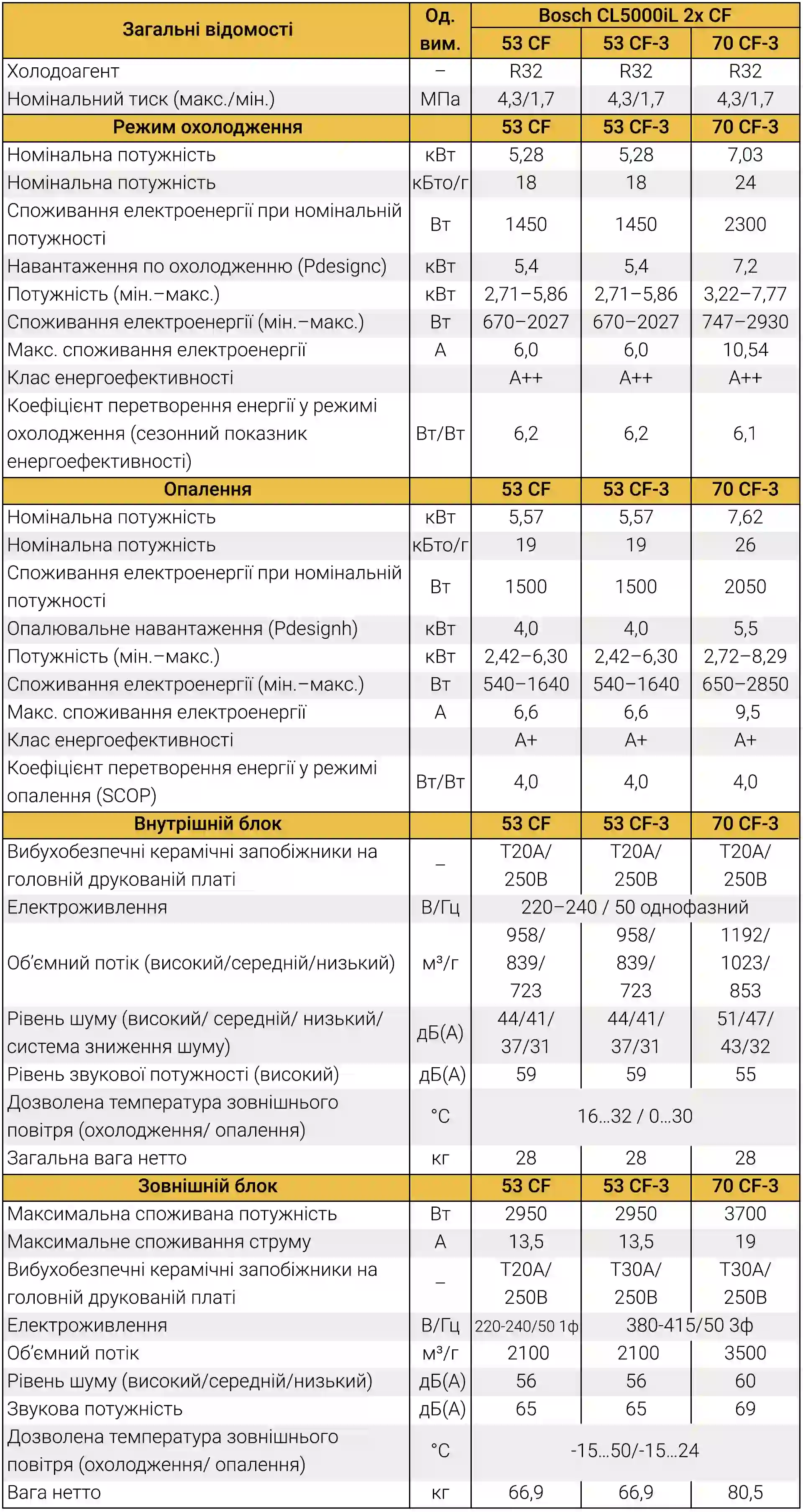 | CL5000iL-Комплект 2x70 CF-3 | 7.0 кВт | до 70 м² | 3 фази (380 В) |