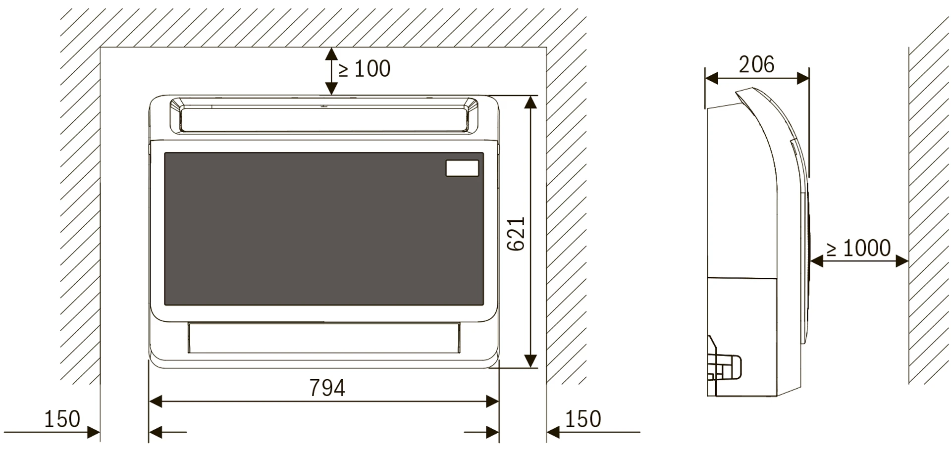 Bosch CL5000iM CN 26E можна встановлювати на підлозі, під стелею або на консолі. Для роботи потрібен зовнішній блок мультиспліт системи Bosch Climate 5000 M, до якого можна підключати кілька внутрішніх блоків одночасно.