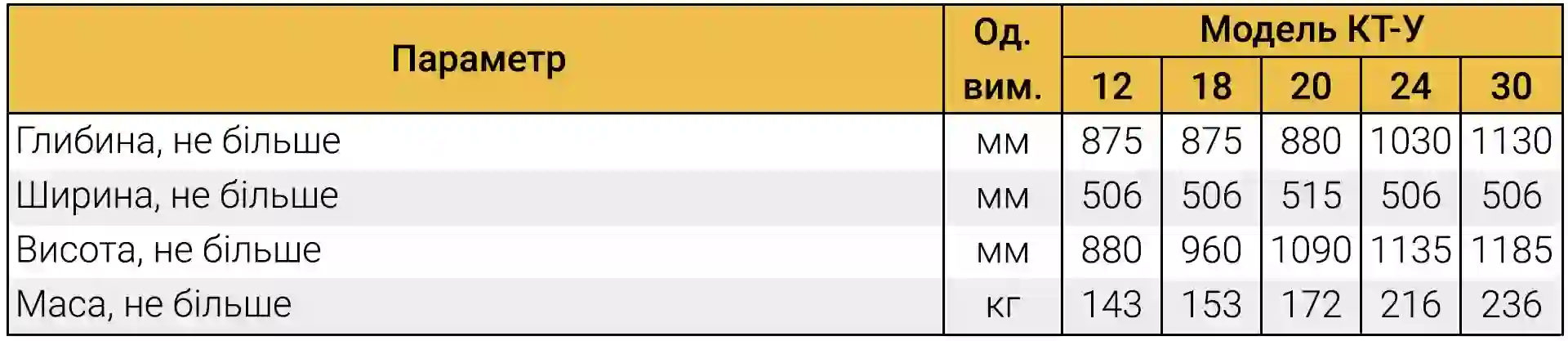 Ряд потужностей: 12, 18, 20, 24 і 30 кВт.