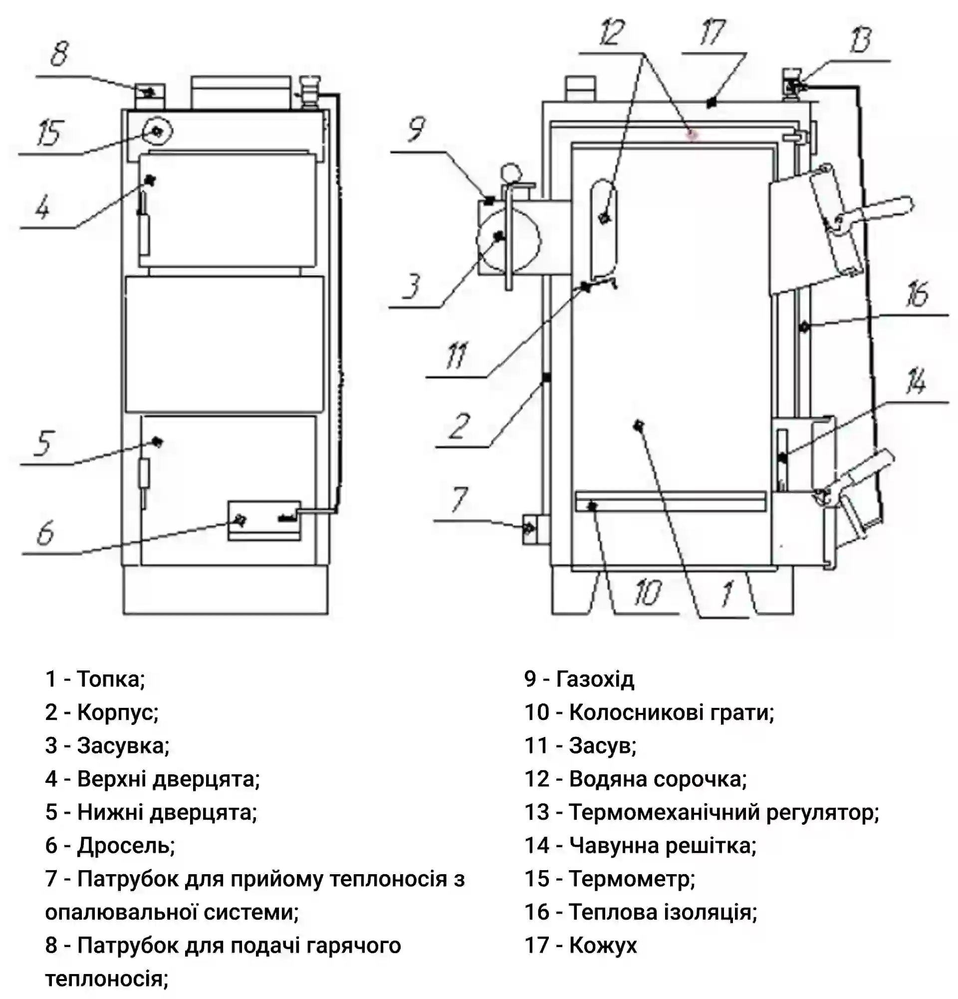 Котел на твердому паливі Тивер КТ (б / р) 12-20 кВт