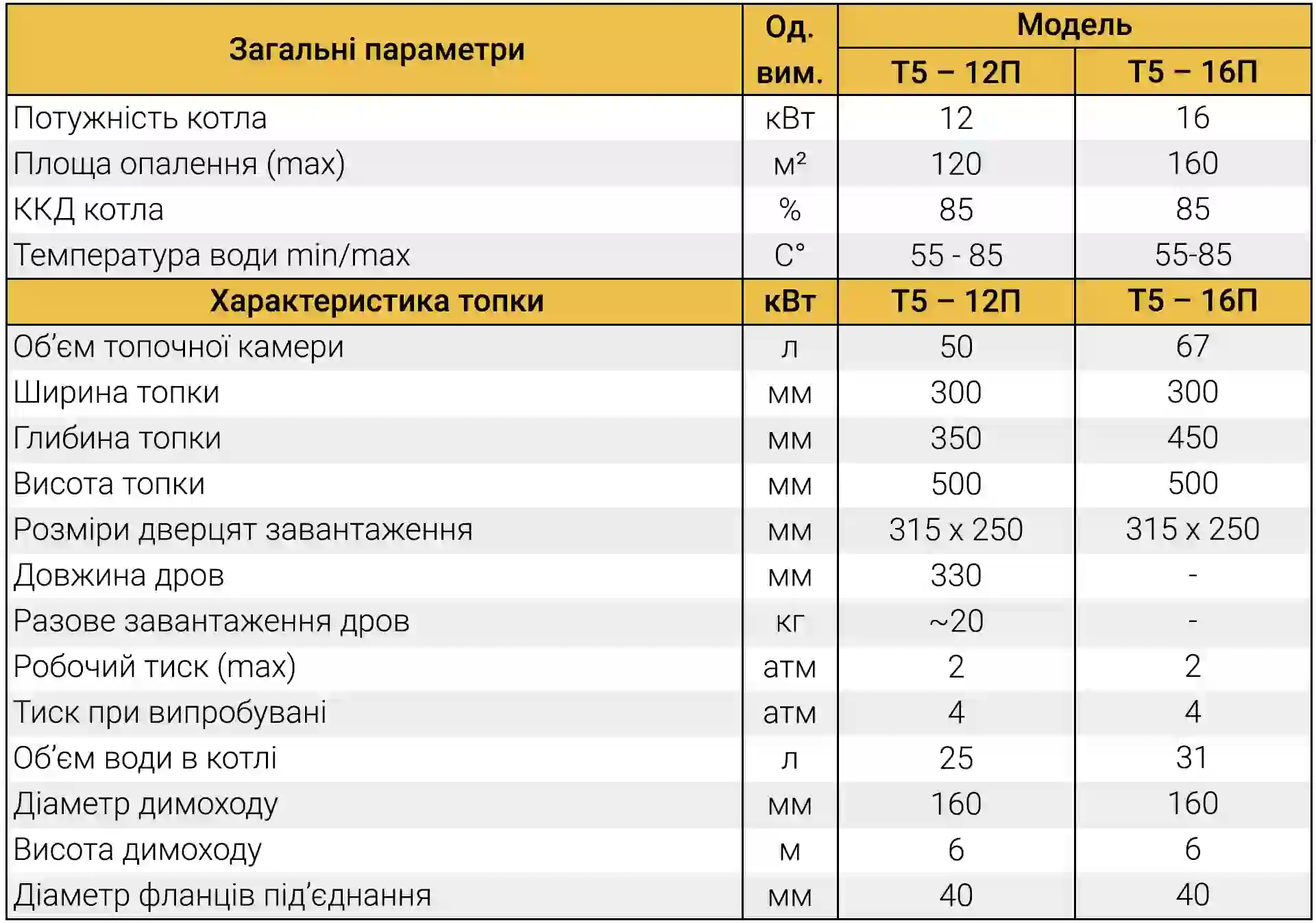- Потужність теплогенеруючого агрегату – 12 та 16 кВт.