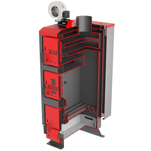 Якщо ви вирішили купити котел Мартен, ви отримуєте повністю готовий до роботи агрегат. У комплект поставки вже входить надійна електронна автоматика (блок управління та вентилятор наддуву). Вона самостійно регулює подачу повітря, підтримуючи задану температуру і продовжуючи час горіння від 8 до 24 годин на одній закладці.