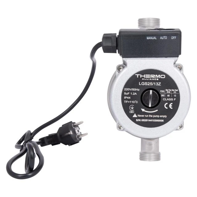 Якщо ви стикаєтеся з проблемою слабкого напору в мережі, оптимальним рішенням стане купити циркуляційний насос Thermo Alliance LGS25-13Z. Ця модель розроблена спеціально для систем опалення, кондиціонування та водопостачання, де необхідно забезпечити примусовий рух рідини та підвищити тиск. Завдяки монтажній довжині 180 мм та наявності з’єднувальних гайок у комплекті, монтаж обладнання проходить швидко та без додаткових витрат.