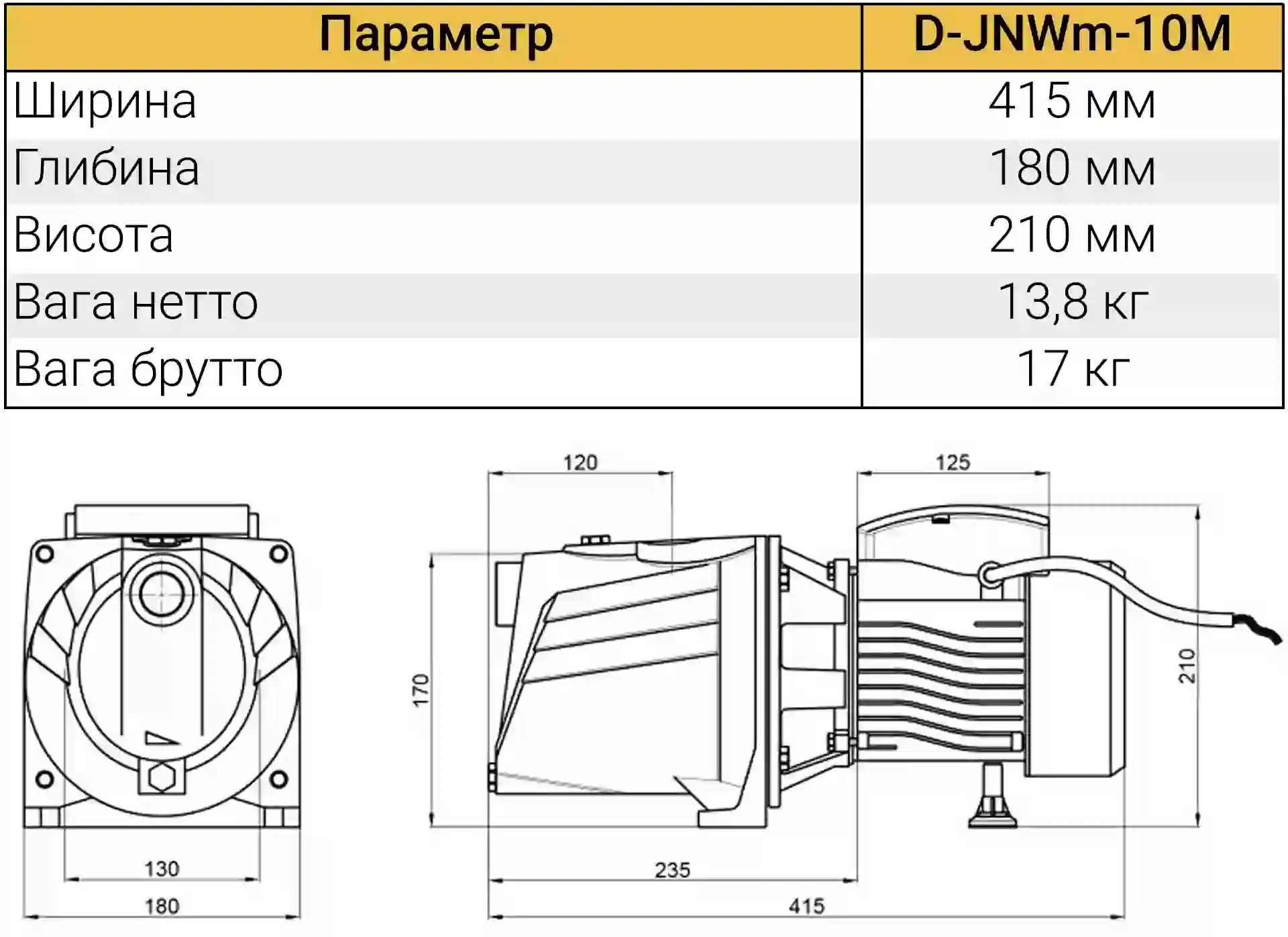 Цей поверхневий насос для свердловини побудований на базі чавунного корпусу, що гарантує низький рівень шуму та стійкість до механічних пошкоджень. Ключовою особливістю є мідна обмотка статора — це значно подовжує термін служби двигуна, захищаючи його від перегріву навіть при тривалих циклах роботи.