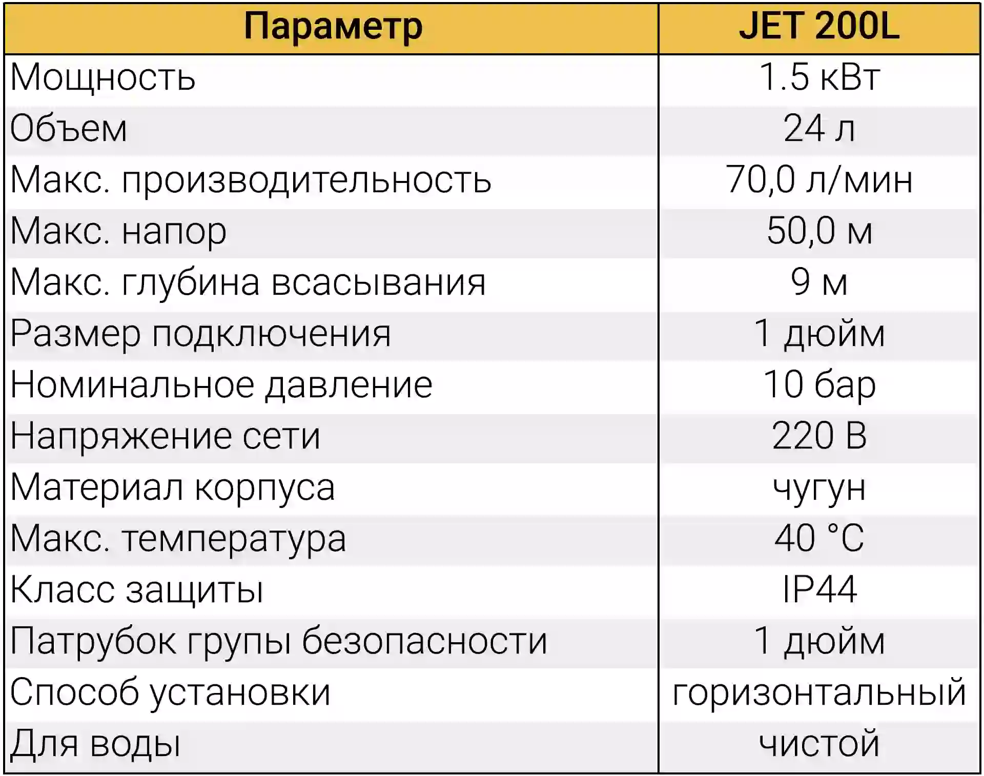 Головна особливість моделі JET 200L — її продуктивність. Завдяки двигуну потужністю 1500 Вт, станція здатна перекачувати до 70 літрів води на хвилину. Це дозволяє комфортно користуватися кількома точками водорозбору одночасно (наприклад, душ, пральна машина та полив саду).