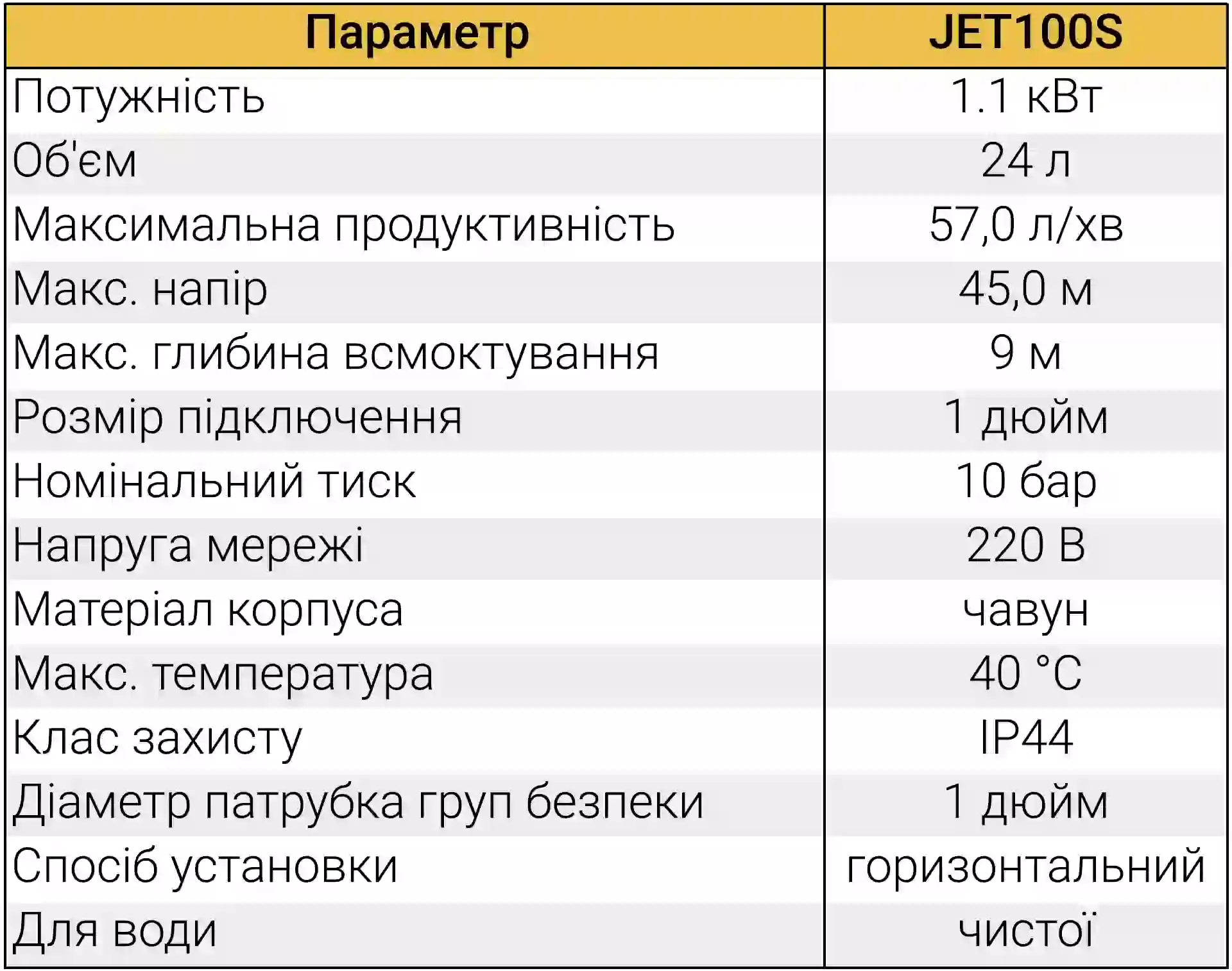 - Поверхневий насос: забезпечує всмоктування води з глибини до 9 метрів.