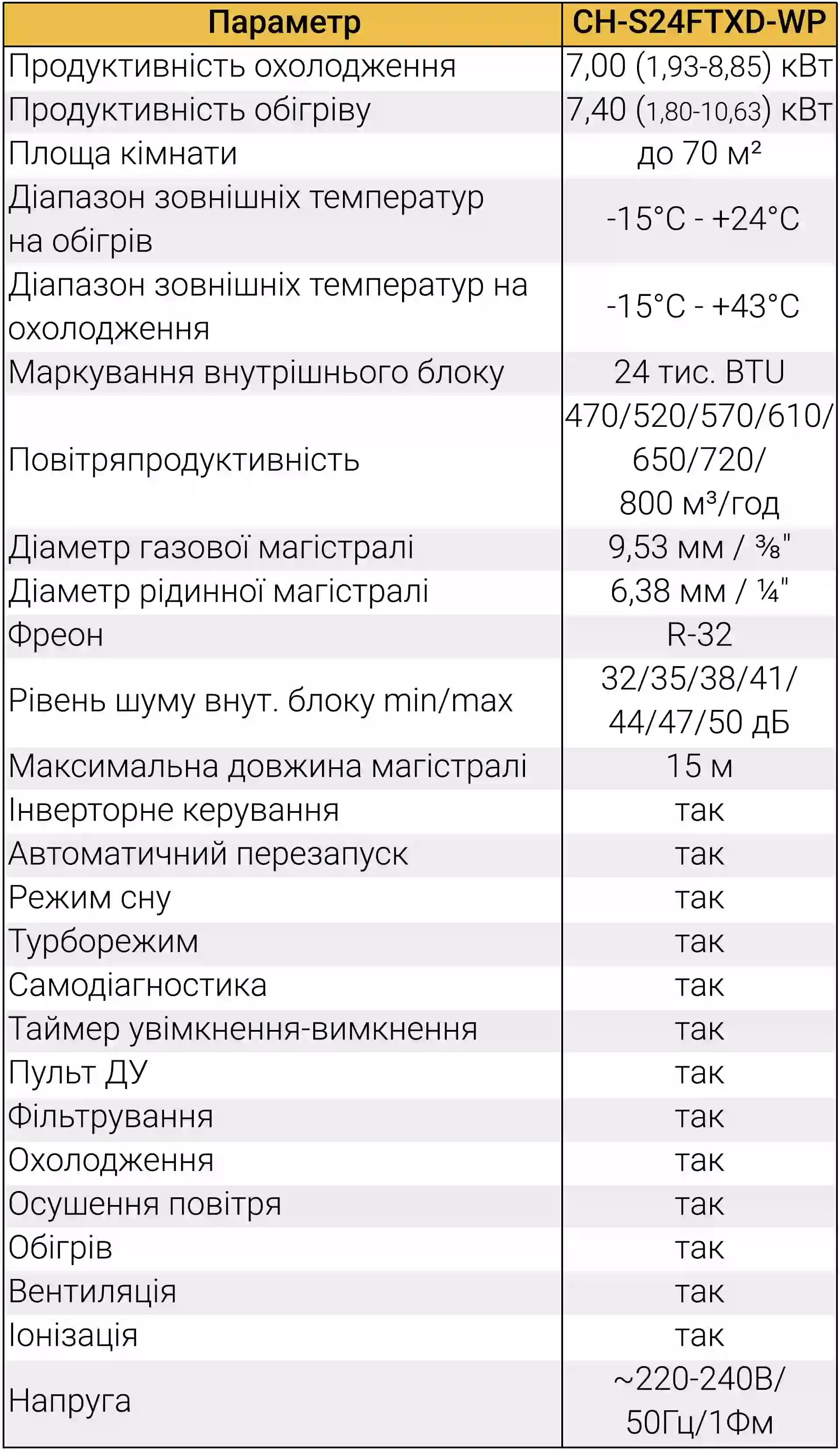 Це вибір на користь безкомпромісної потужності та естетики. Якщо ви плануєте купити кондиціонер купер хантер для великої зали, модель CH-S24FTXD-WP забезпечить надійну прохолоду влітку та ефективний обігрів у міжсезоння. Це інвестиція в комфорт преміум-класу, підкріплена передовими технологіями C&H.