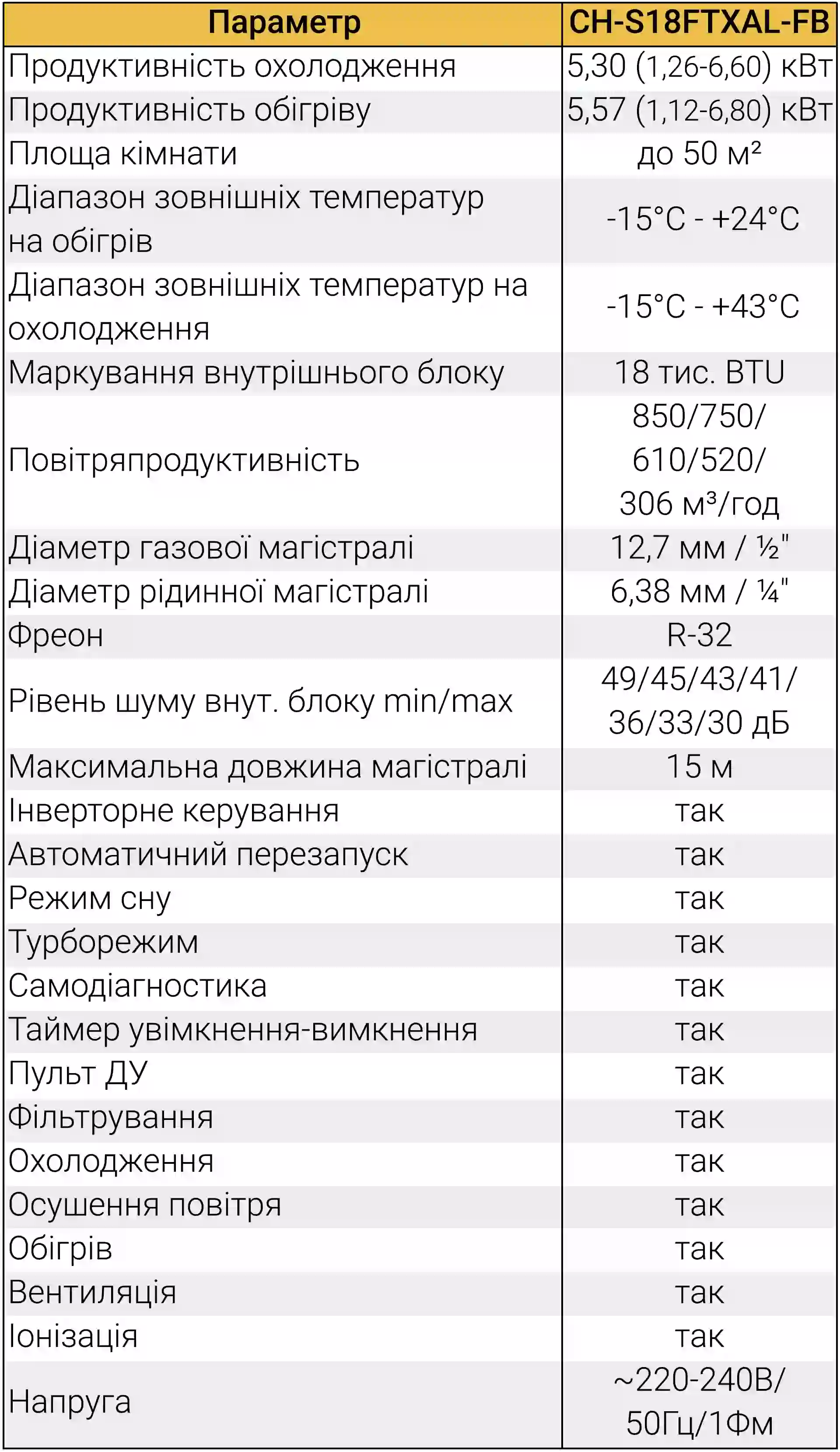 Обираючи цей внутрішній блок, ви інвестуєте в преміальний комфорт, надійність та унікальний дизайн, який підкреслить статус вашого приміщення.