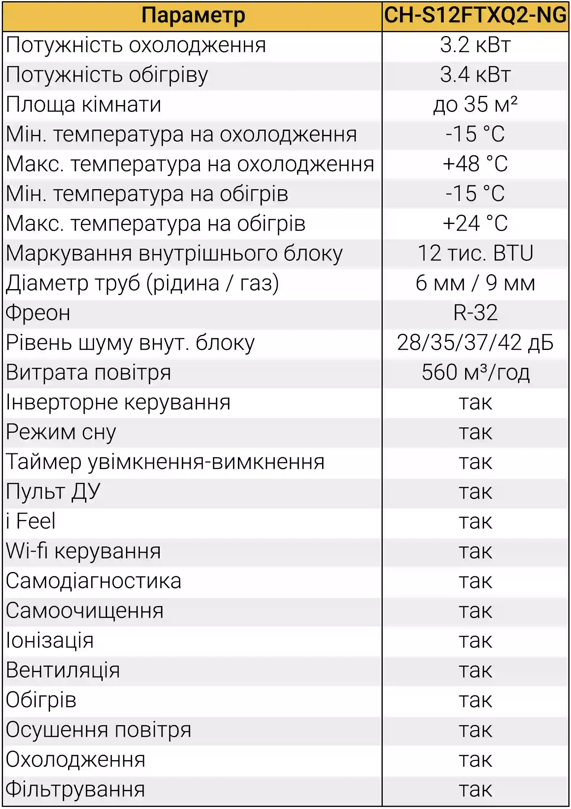 Кондиціонер Cooper&Hunter Veritas CH-S12FTXQ-NG: Комфорт для квартири-студії та вітальні