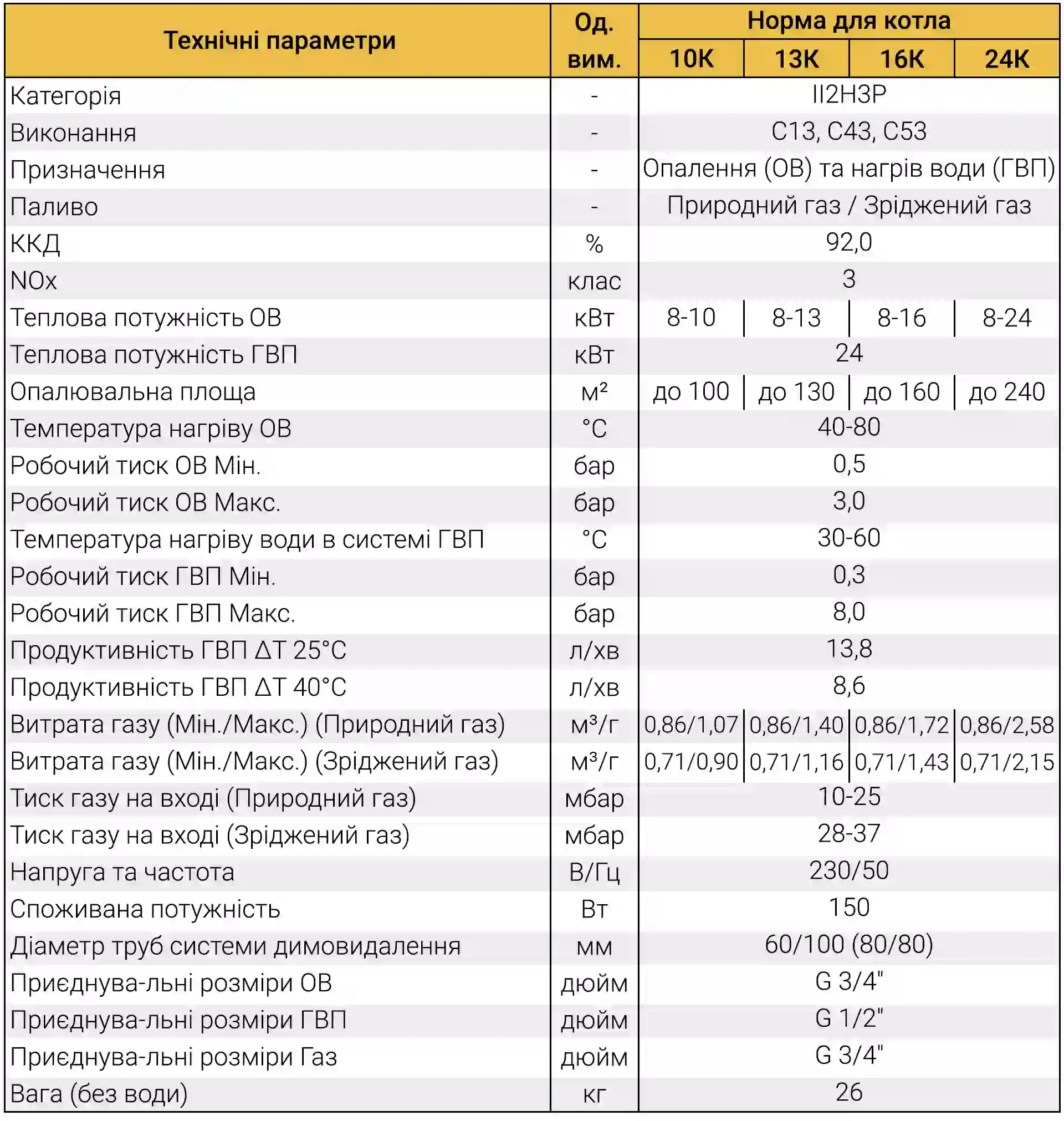 - Можливість роботи на природному та зрідженому газі.