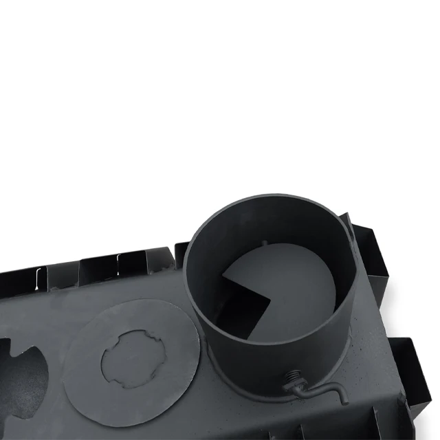 - Оснащена колосниковою решіткою, піддувалом, зольним ящиком та шиберною заслінкою