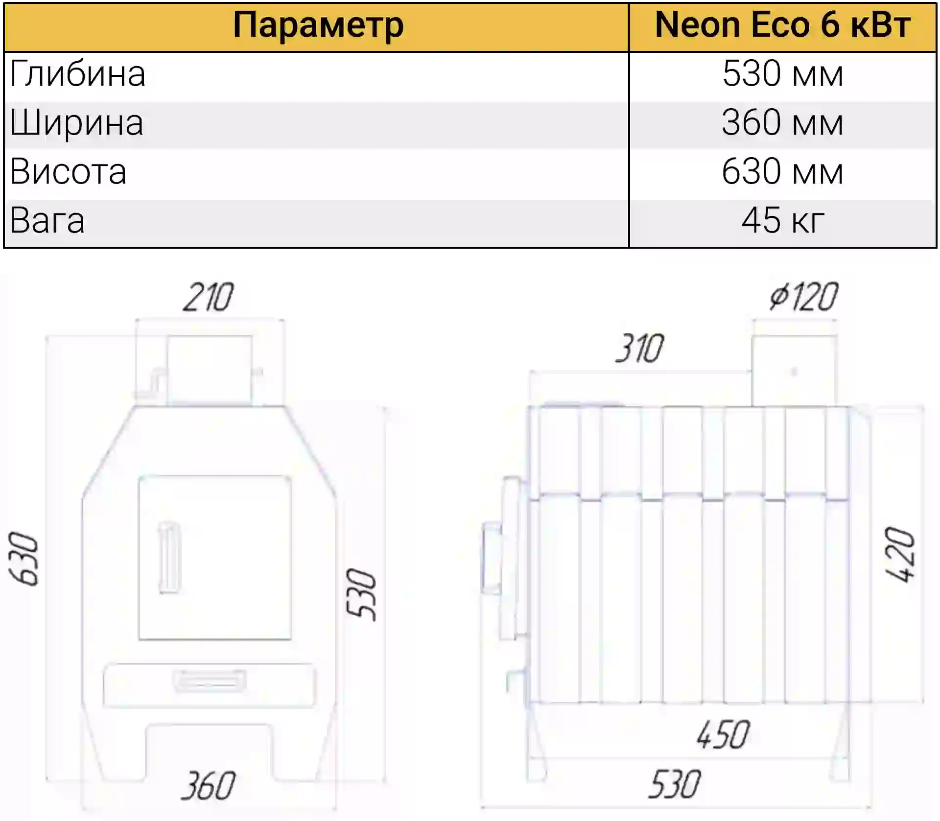 Булер'ян Neon Eco — це не просто піч для опалення, а універсальний інструмент для створення тепла та комфорту. Завдяки вбудованій варильній поверхні вона не лише обігріє приміщення, але й дозволить приготувати або підігріти їжу. Ідеально підходить для використання у будинках, майстернях, наметах та навіть у польових умовах.