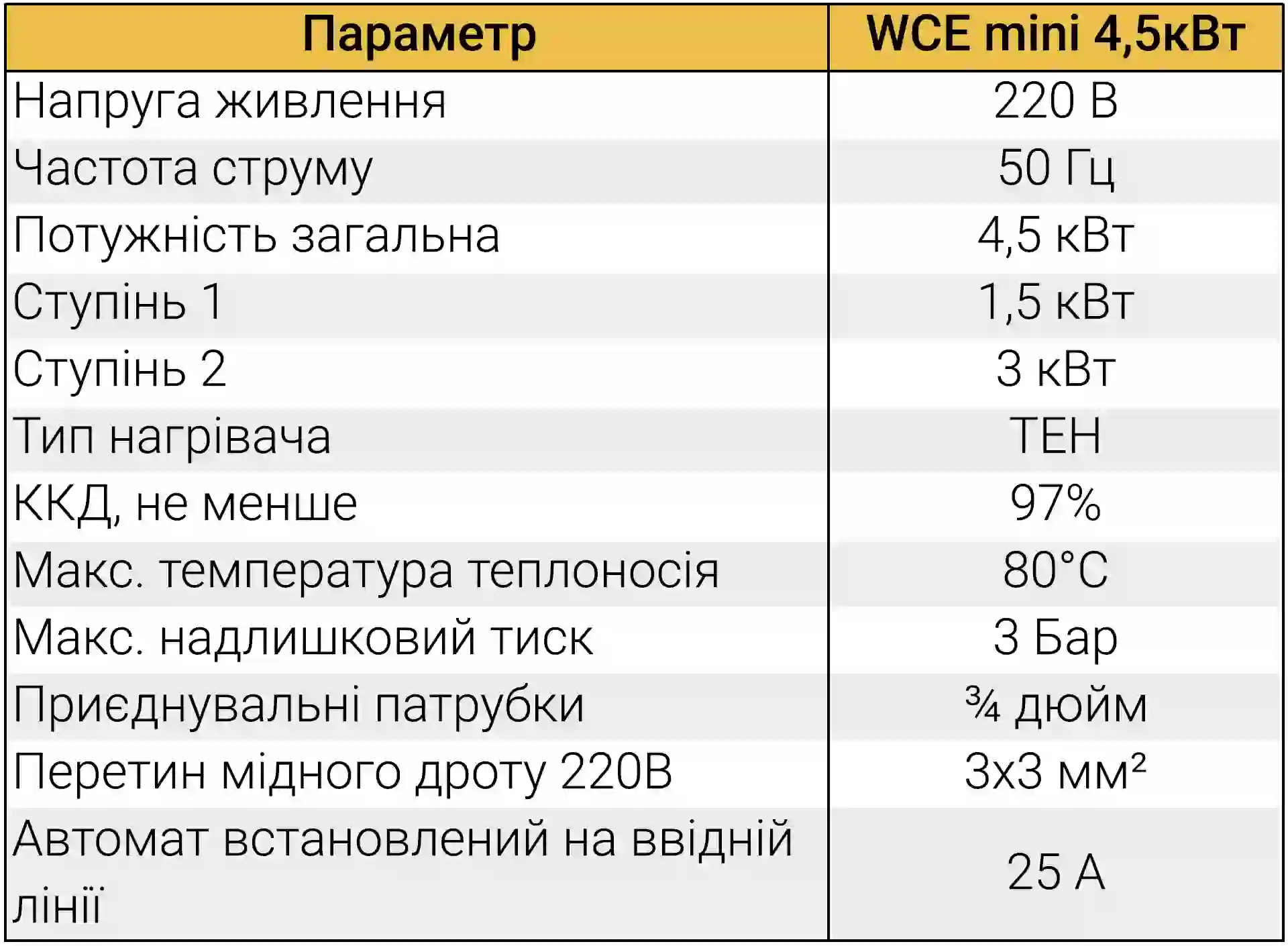 Головна перевага цієї моделі — можливість отримати достатньо тепла, залишаючись в межах однофазного підключення (220 В). Це критично важливо для старого житлового фонду, де немає технічної можливості провести 380 В.