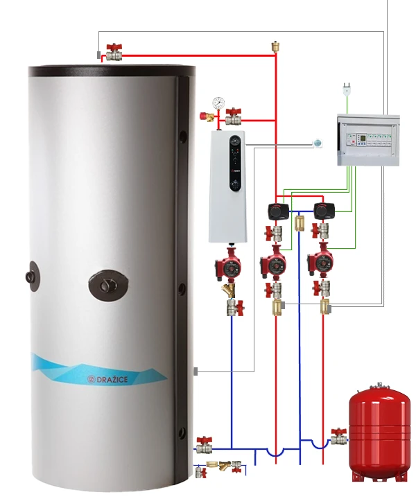 - Можливість комбінування: Теплоакумулятор — це ідеальний "вузол" для підключення інших джерел тепла. Ви можете врізати в нього твердопаливний котел. Наприклад, вдень ви палите дровами (заряджаючи той самий бак), а вночі, коли дрова прогоріли, автоматика вмикає електрокотел для підтримки системи.
